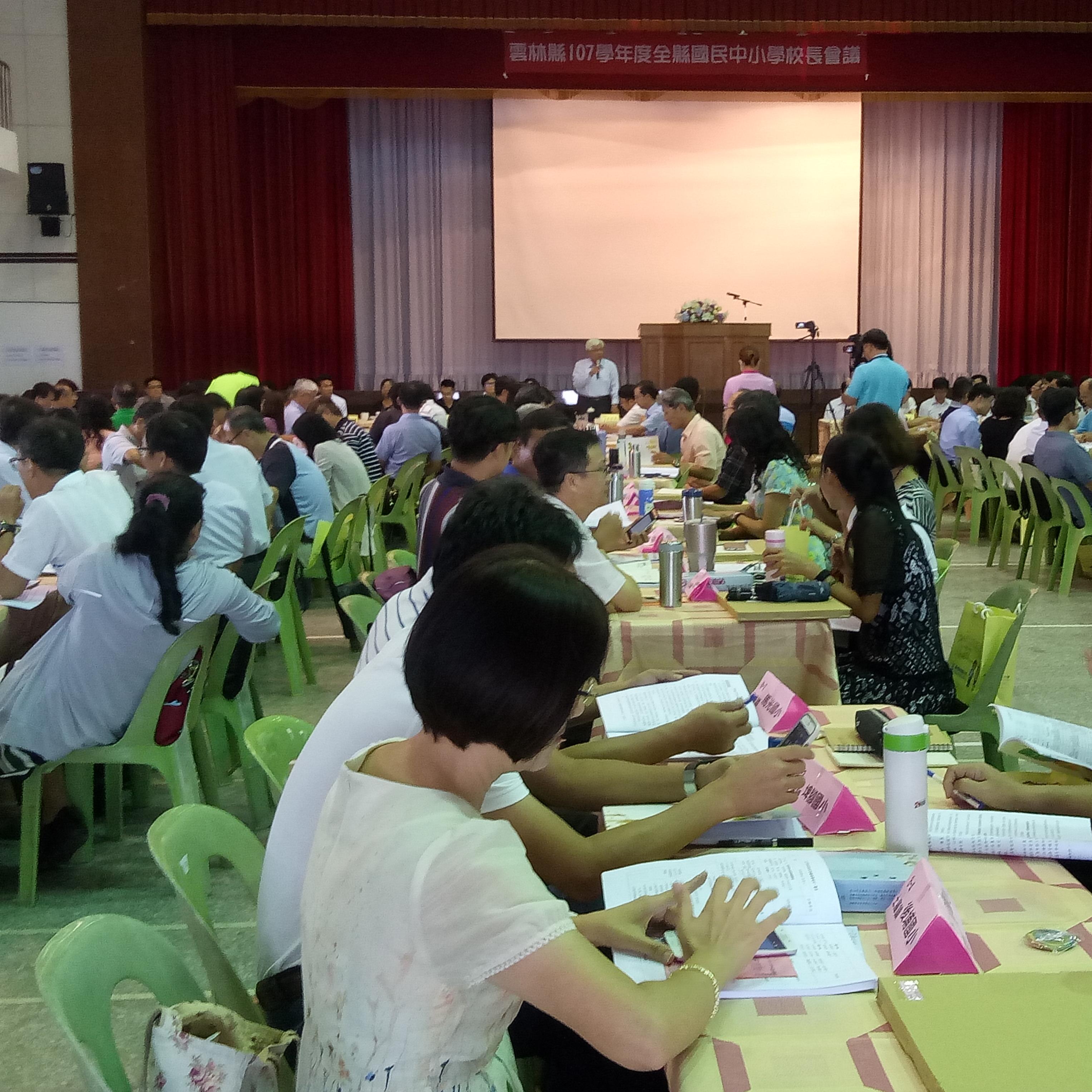 2018.08.22 | 09:27 AM 瀏覽次數 | 10981作者 | 回鄉米----------------------------------------雲林縣 107 學年度公私立國中小校長會議於在褒忠國小舉行,與會國小校長縣長肯定雲林教育成果,並勉勵全縣校長「堅持品格扎根․邁向教育正義之路」,期能打造一個公平正義的雲林教育。 -