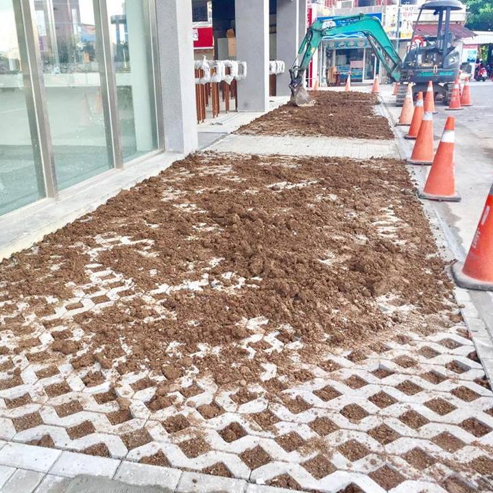 2017.09.05 | 00:55 AM 瀏覽次數 | 8481作者 | 陳家澎----------------------------------------為解決綠覆蓋不足難以取得使用執照的困境,在「建花台」一途仍無效後,日前由工務處所託付的新廠商已在新公車總站民族路一側下客處(原定的綠覆蓋區)開始執行柏油路刨除的作業,並鋪上「植草磚」。4日傍晚,澎湖青 -