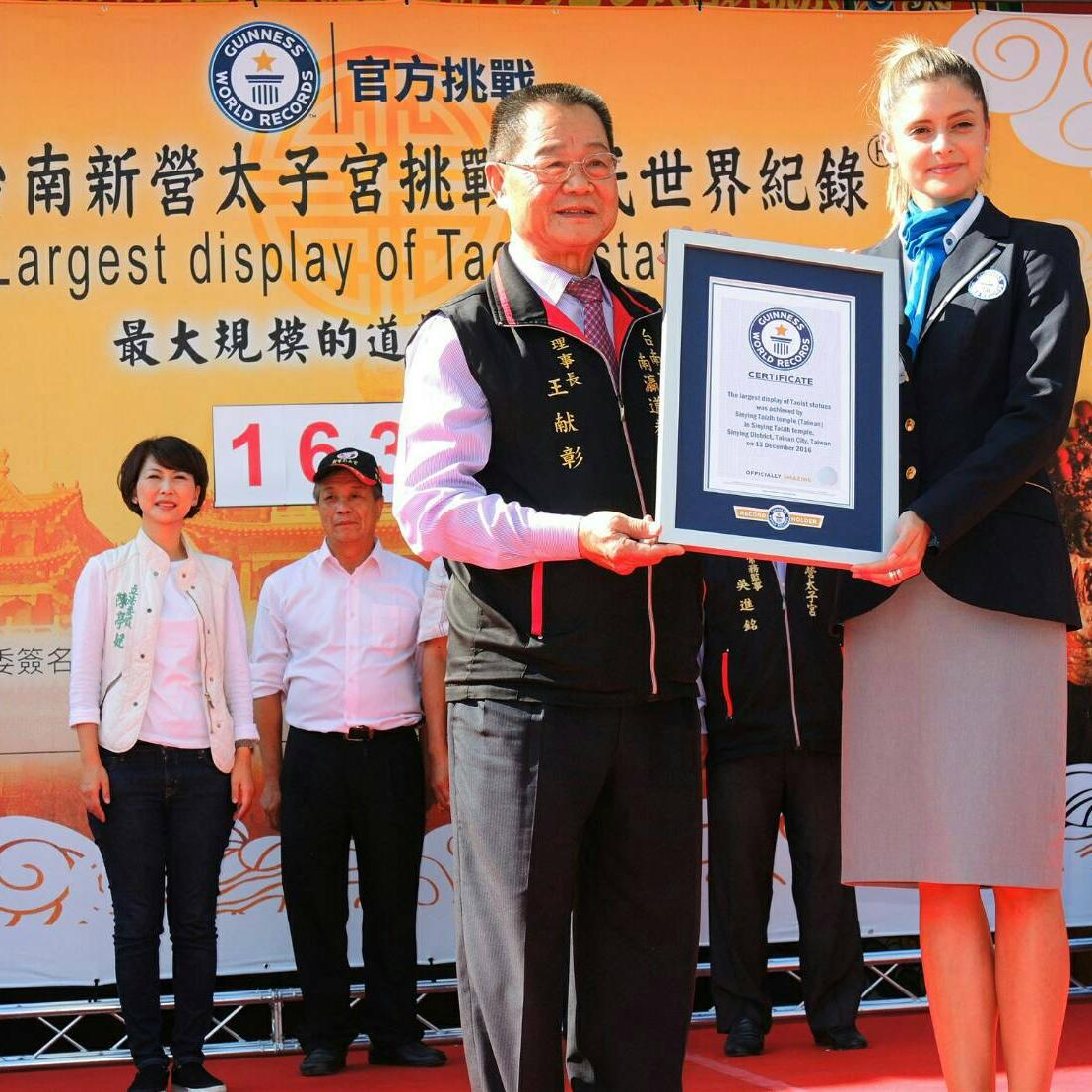 2016.12.13 | 21:46 PM 瀏覽次數 | 8949作者 | 阿志----------------------------------------台南新營太子宮廟鑑醮神尊16319尊破金氏紀錄獲頒證書 -