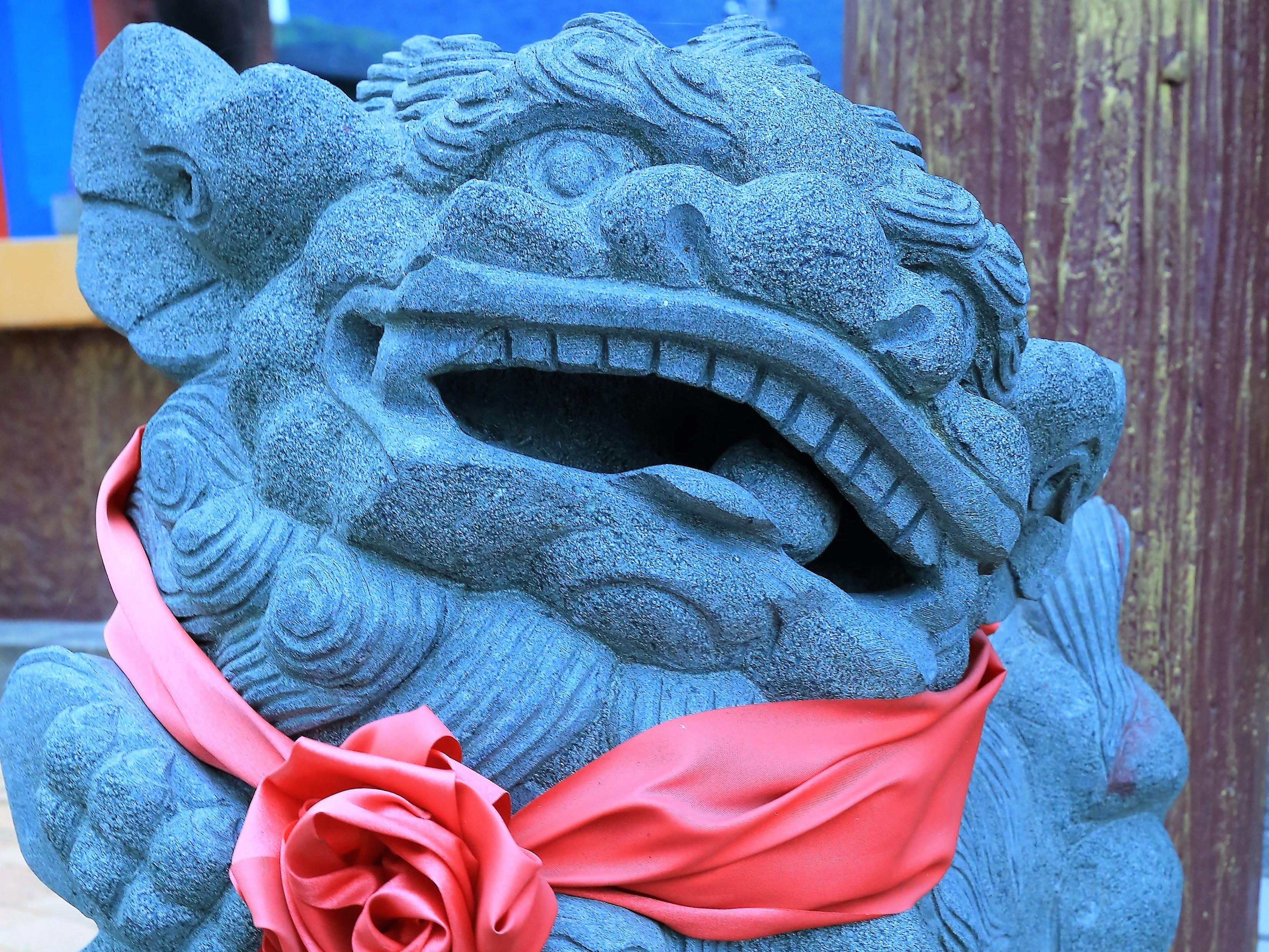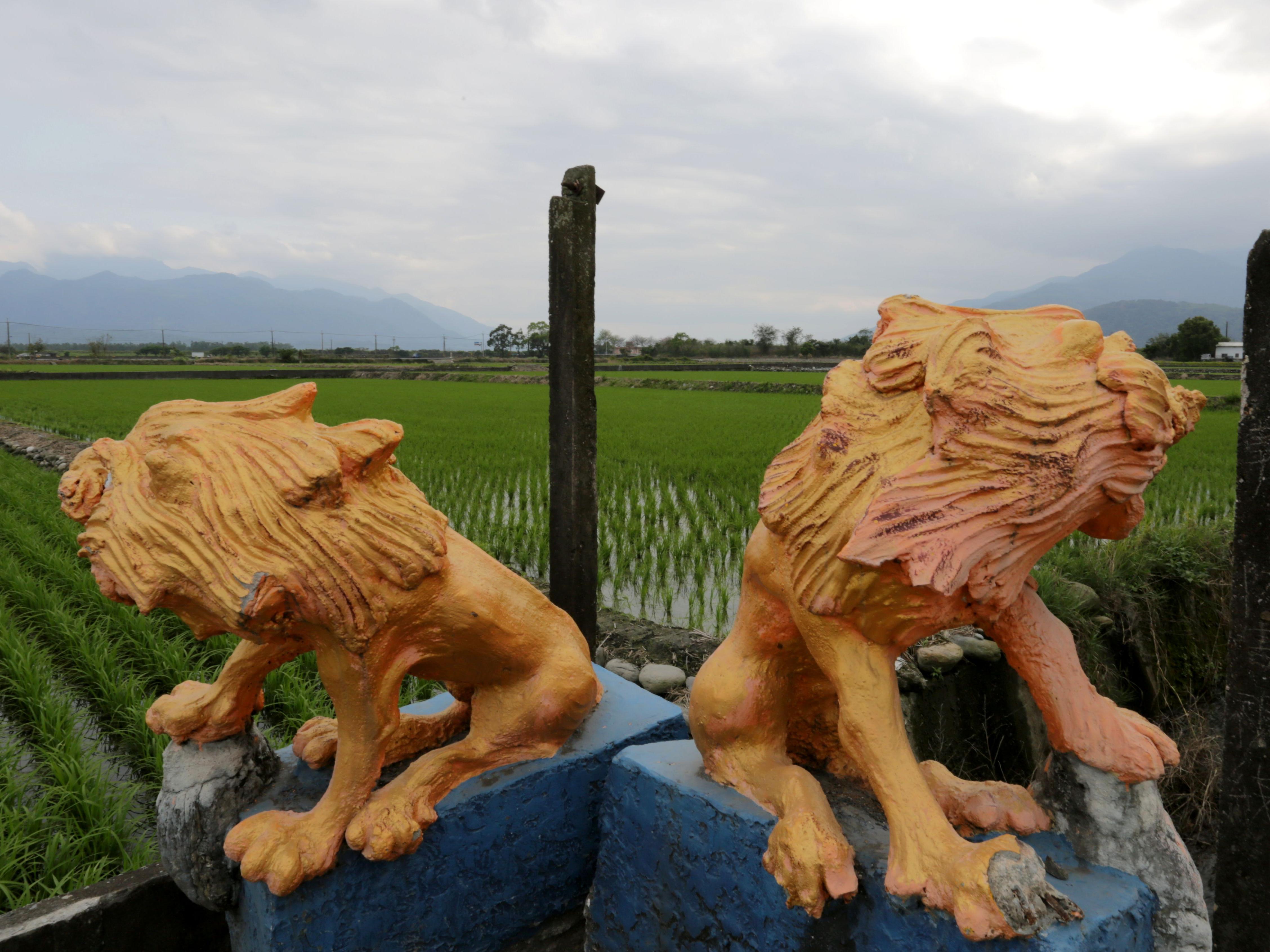 換上傳統石獅,習慣了,信 眾看起來祥和多了。