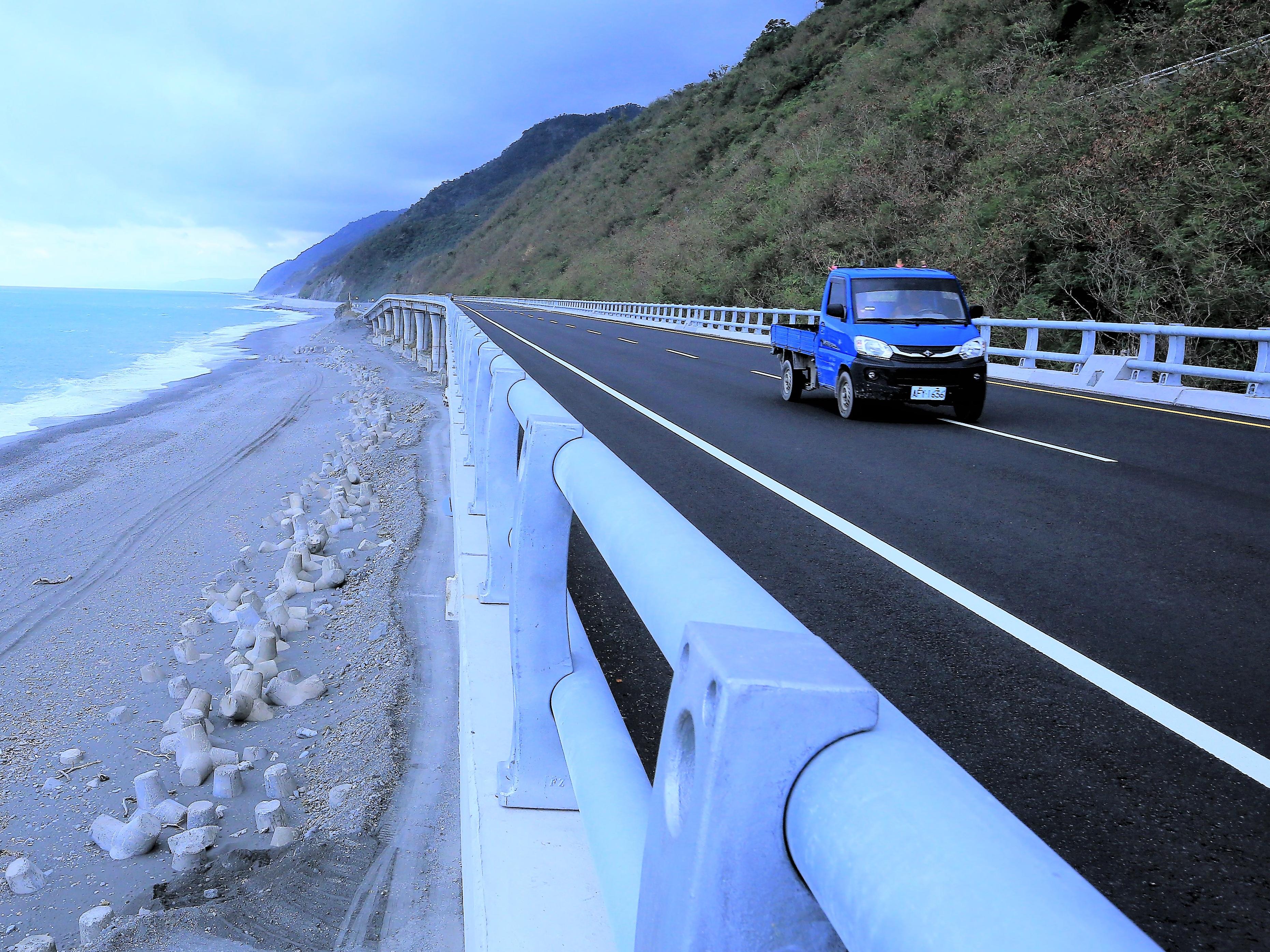 改善後的南迴公路離海岸很近,強浪沖擊,少了消波塊,路基難保不被淘空!