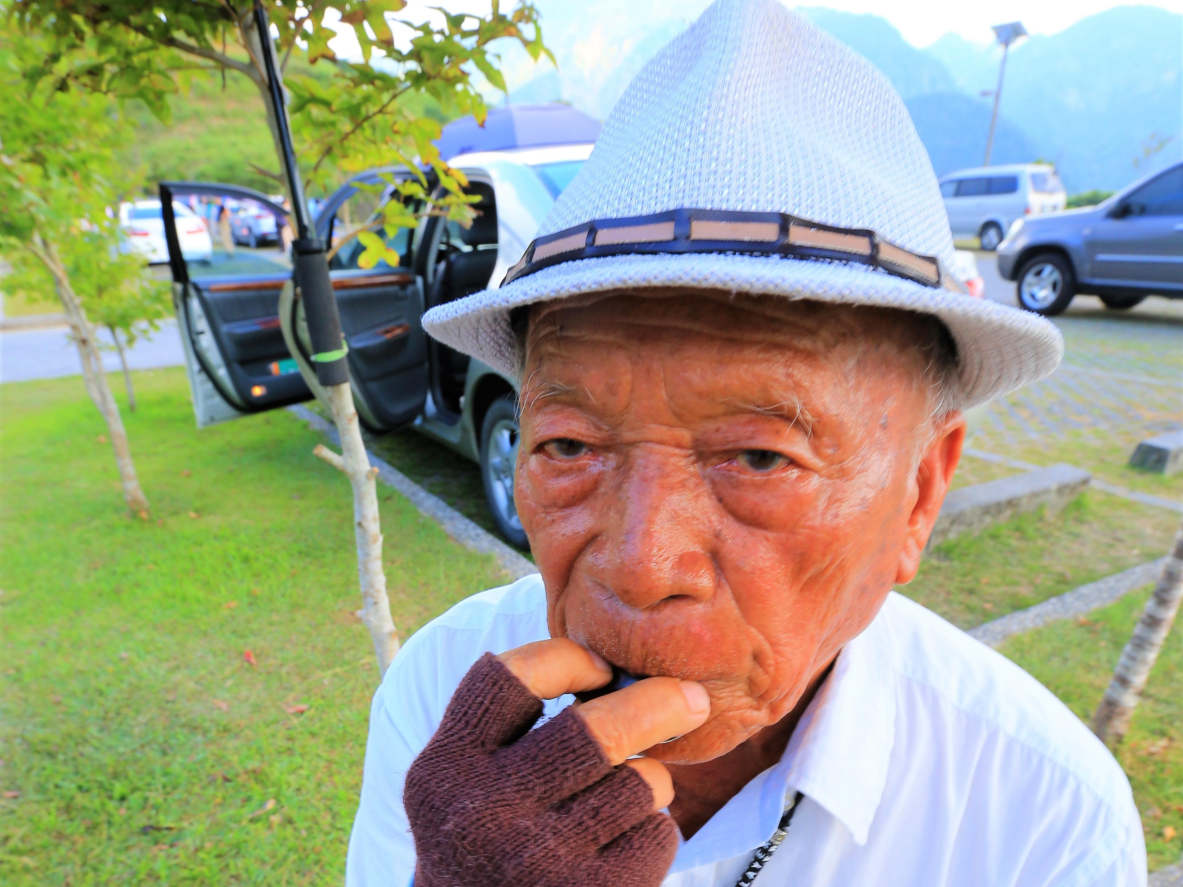 六十石山花季兩個月,他就來台東池上,住在弟弟家,每天就到六十石山停車場吹樹葉笛,他吹得高興,遊客看到八十歲的老公公,用一片樹葉吹出老遠都能聴到的樂聲,紛紛掏錢讚賞。