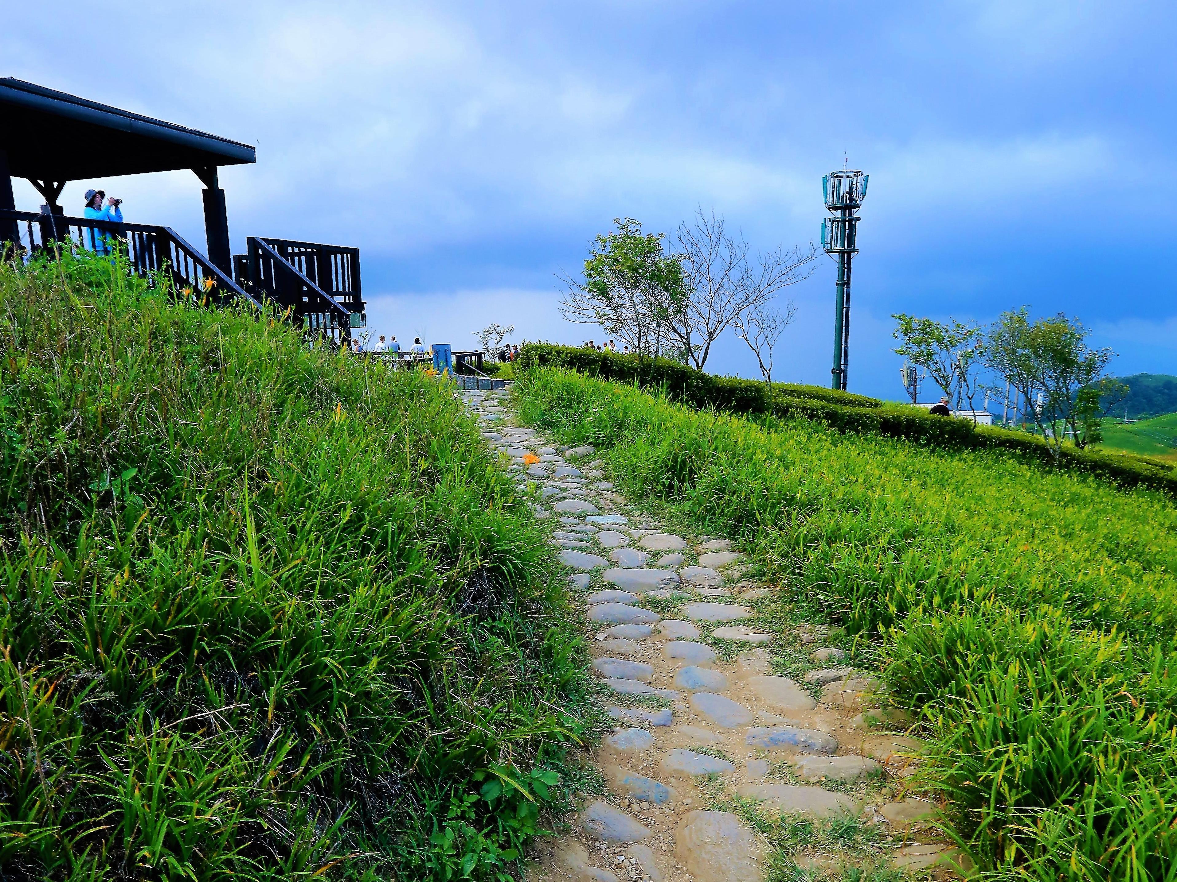 在六十石山海拔最高的小瑞士金針園,有條曲形的花中小徑,是用河川轉石鋪成的,到那裡,可俯瞰六十石山全景,尤其受到攝影人的喜歡。