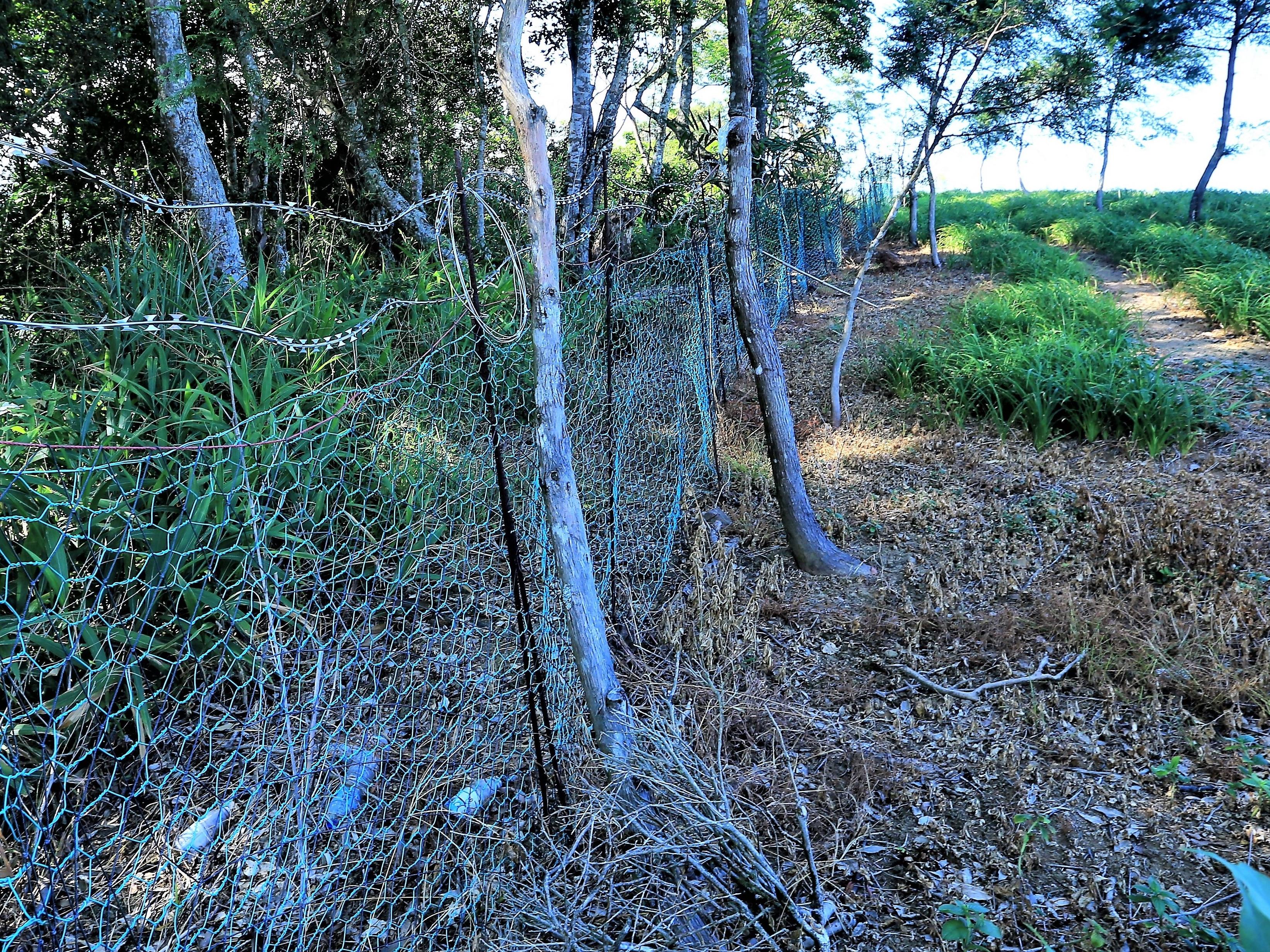 台灣獼猴、山羌在不能獵殺的情況下,農民也沒有那麽多時間放鞭炮驅趕,赤柯山的金針農民,就只能在金針園和原始林界邊,架起這種細目圍網和刀片鐵絲網,防羌防猴。
