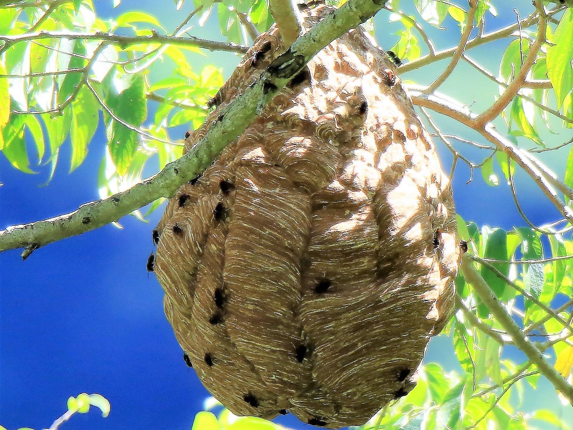 八通關越道(旅遊業稱為瓦拉米步道)山風一號橋前端,一株山黃麻樹梢上的一窩黑腹虎頭蜂,前陣子傳出螫傷遊客。消息傳出後,就有捕蜂人前往捕蜂,越道前端兩個虎頭蜂巢都被摘走了。