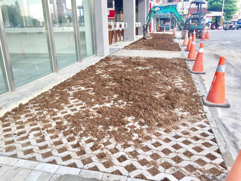 為解決綠覆蓋不足難以取得使用執照的困境,在「建花台」一途仍無效後,日前由工務處所託付的新廠商已在新公車總站民族路一側下客處(原定的綠覆蓋區)開始執行柏油路刨除的作業,並鋪上「植草磚」。4日傍晚,澎湖青年陣線副執行長對此開砲,痛批植草磚危害安全,更質疑新公車總站「未按圖施工」,要求縣府公布申請建照的設計圖讓公民社會檢驗。