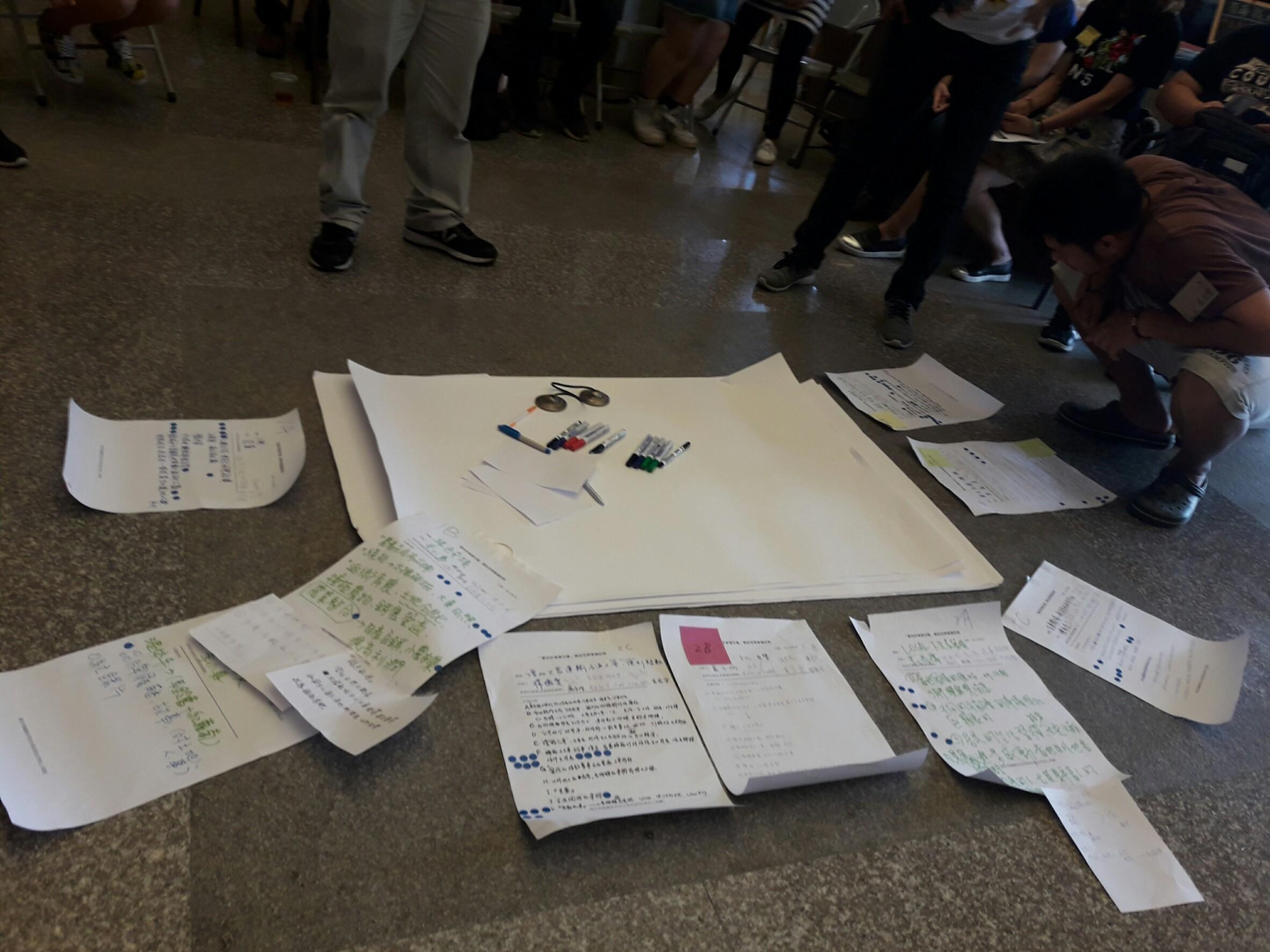 把會議中的所有想法在地板上鋪開,成為下一步的種子。攝影/雲林好事要花聲合作社@雲林 我們可以做些什麼?