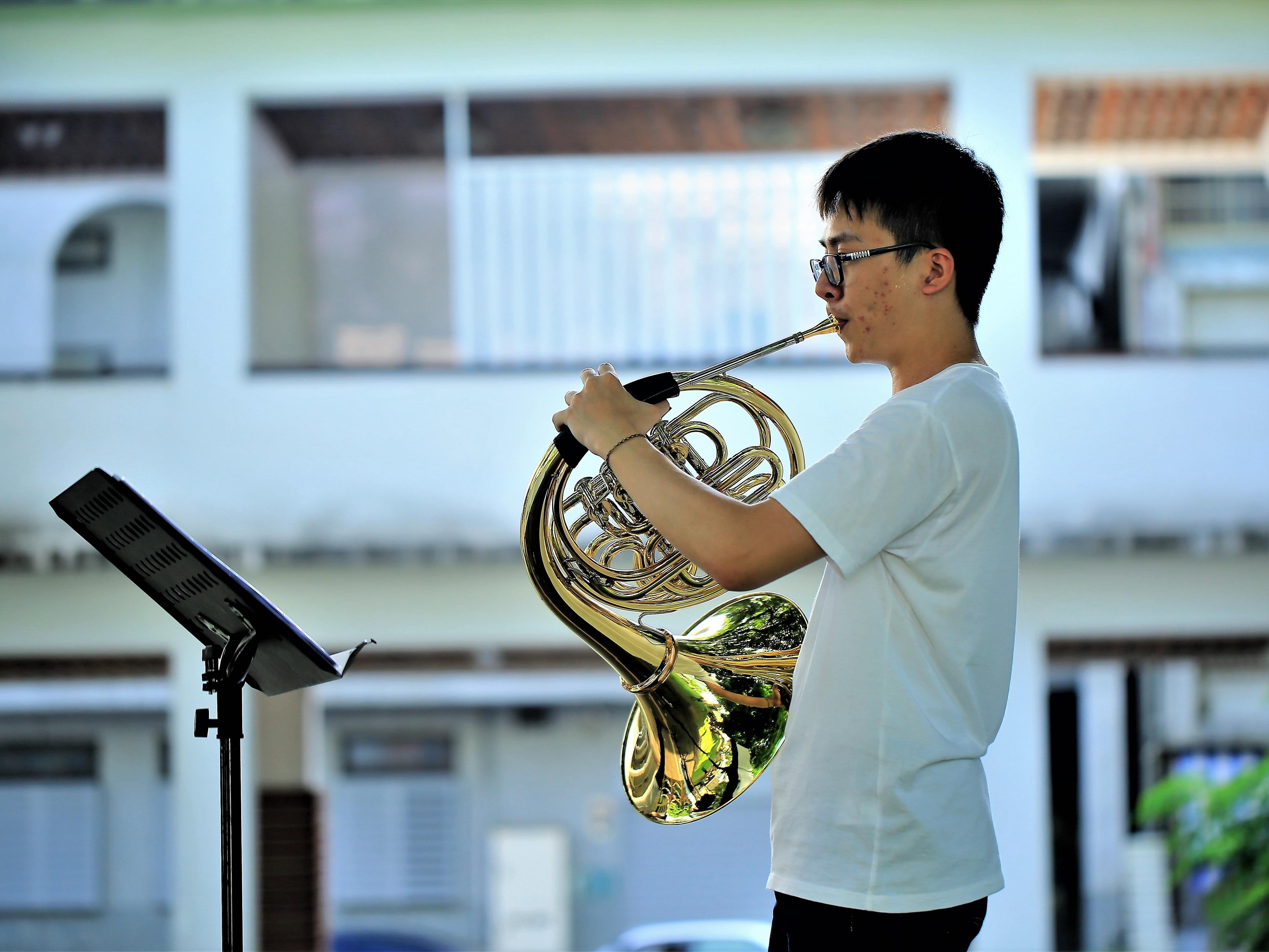 桃園人,畢業於國立台北教育大學音樂系研究所演奏組、國立東華大學音樂學系,主修法國號。