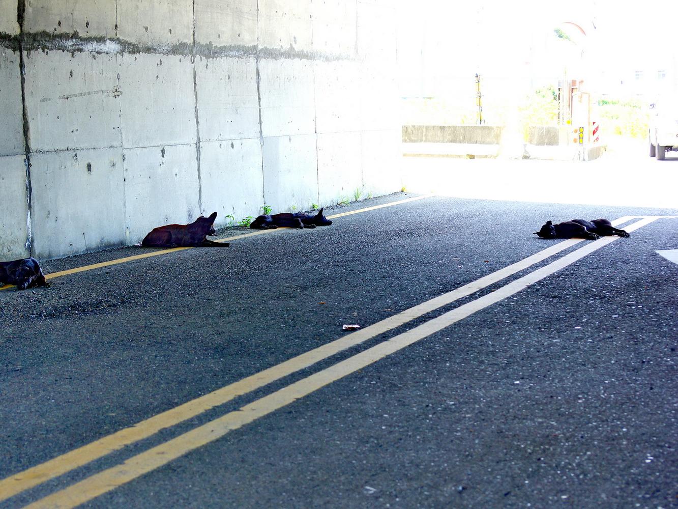 馬路是牠們睡覺玩樂嬉戲的地方.但馬路是給車走的.這樣難保不發生意外 -
