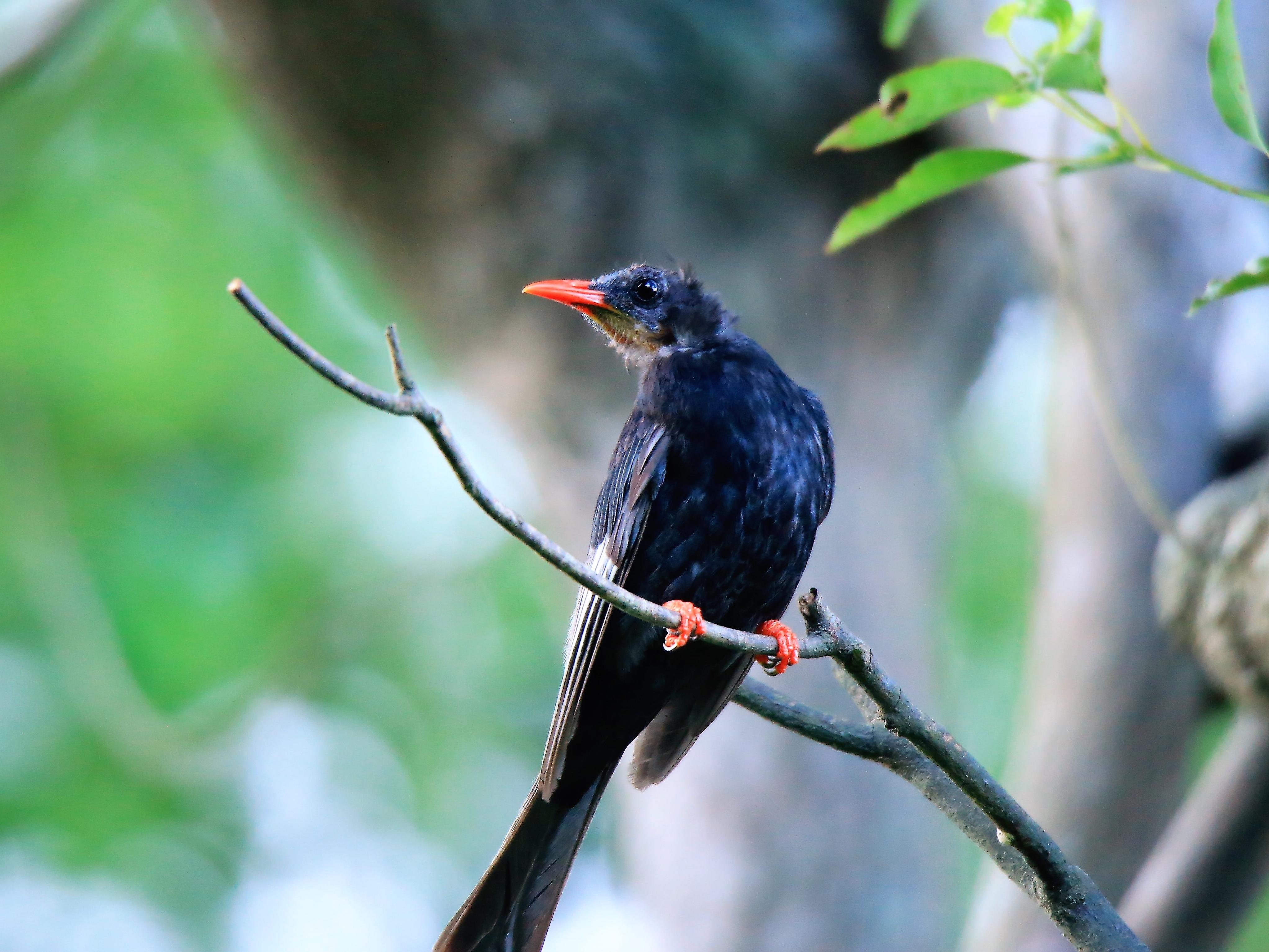 紅嘴黑鵯幼鳥,會飛前得全靠親鳥。
