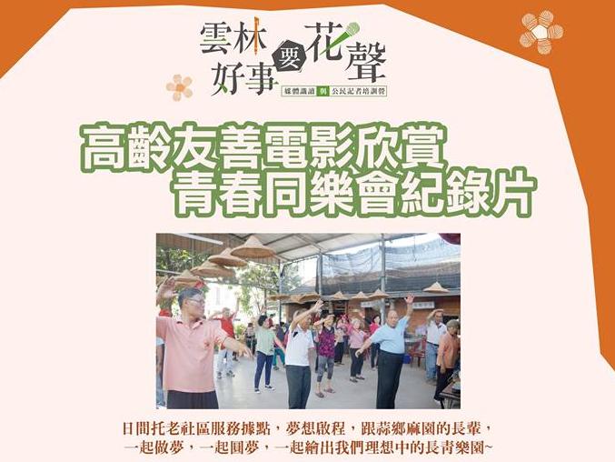 這場高齡友善影片放映,是由雲林縣政府新聞處,依據縣府營造高齡友善城市的目標,委託「106年媒體識讀與公民記者訓練」的承辦單位「串樓口社群平台」辦理,與深耕雲林在地經營多年的《台灣公益CEO協會》協同辦理,「串樓口社群平台」活動長黃淑玲表示:「此次公民記者訓練活動,希望藉由民間志工的力量,多多發表社區在地的新聞,所以取名為「雲林好事要花聲」,讓雲林的美好被看見,從8月26日開訓迄今,已經訓練出超過12位公民記者,上課地點也遍布西螺道之驛、延平老街、虎尾涌翠閣、蓋亞基地……像這麼熱血活潑的阿公阿嬤的社區活動,歡迎社區派志工來參加公民記者訓練,讓好事藉由媒體,傳揚出來鼓勵更多的人加入。」