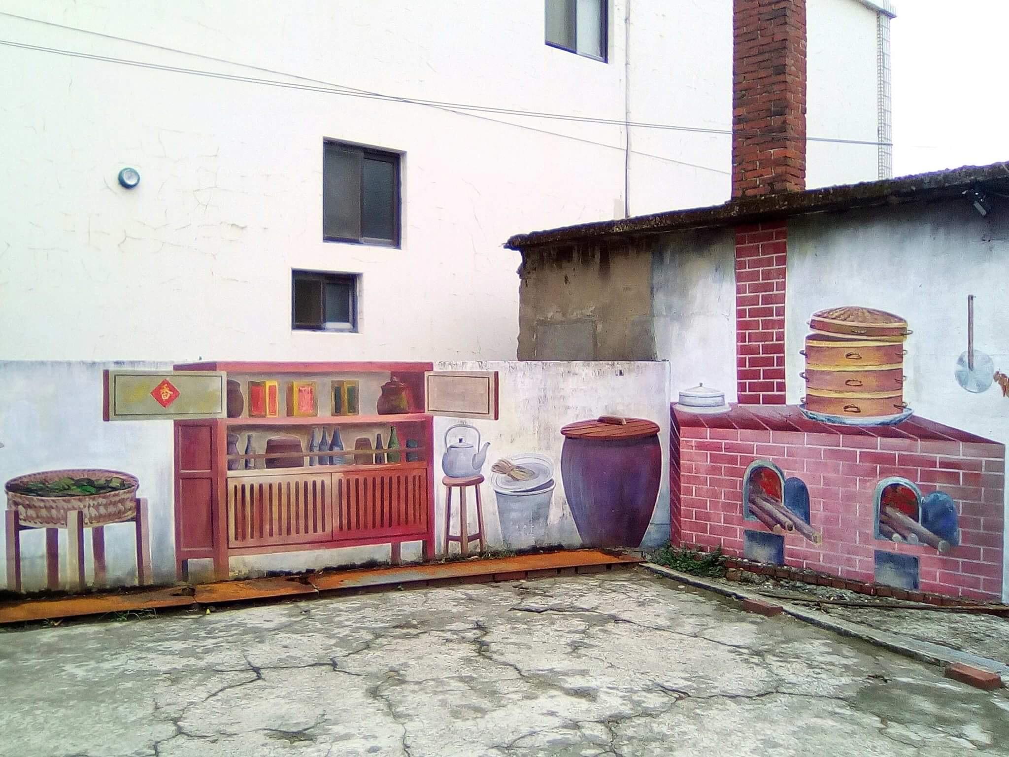 彩繪藝術不只把社區美化得好,也重現了阿嬤們辛苦工作的場所,讓後代子孫體會早期的食物是燒柴燒出來的! -
