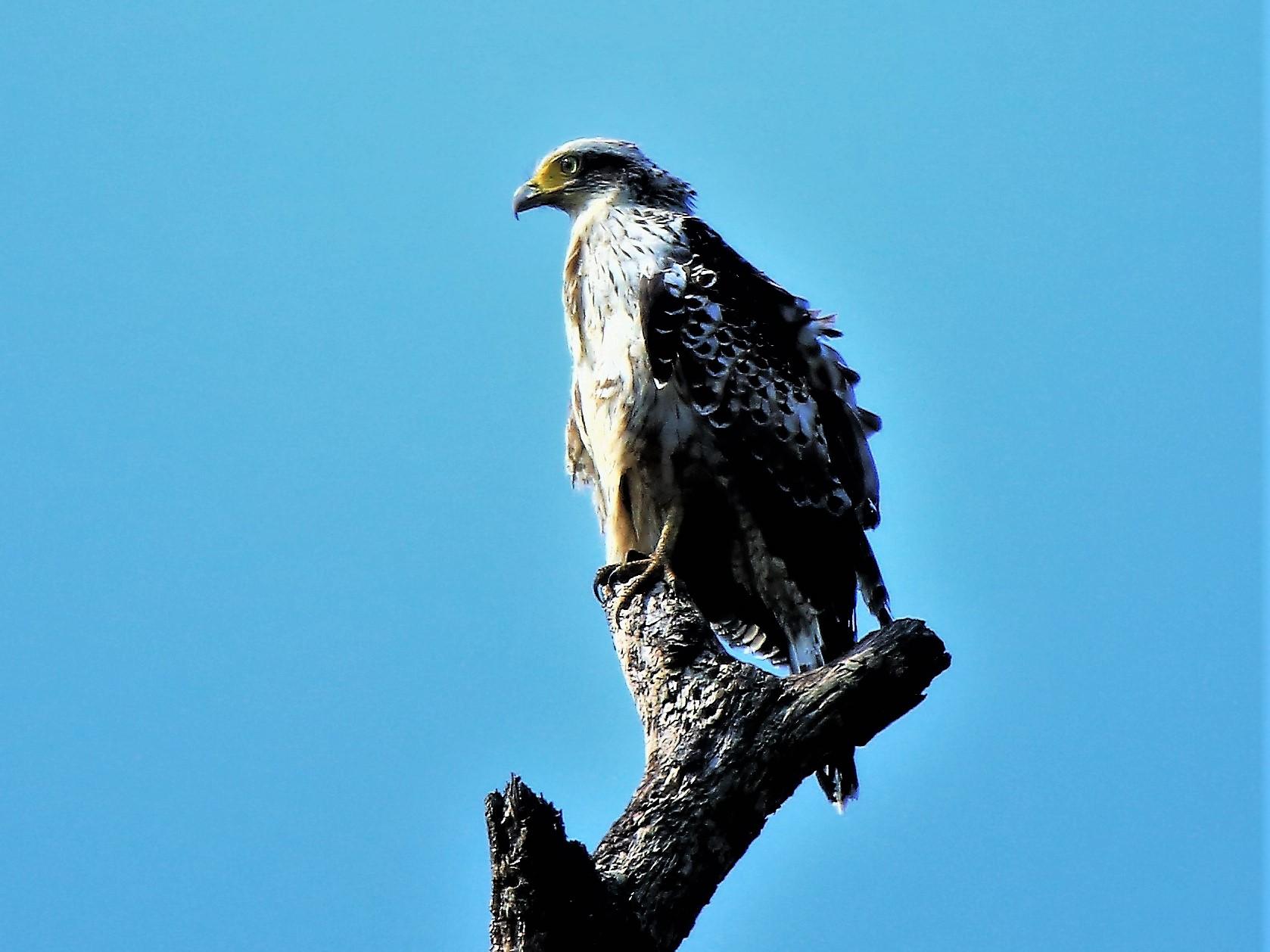 一般人認識的蛇雕,全身羽色黑或暗黑,間有白色斑點,是最容易分辦的大鵰。但如果牠的羽色改變,從黑色有白紋點斑,變成乳白色有黑斑,你還認得出來嗎?