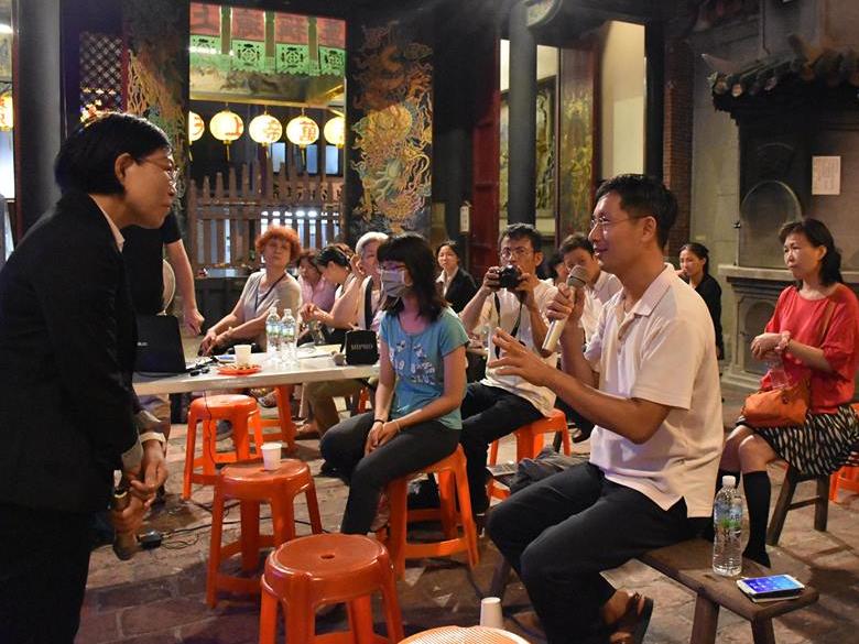廟口講座文化,吸引來自不同階層的市民,專注的態度,勾起我學齡前在廟口受教育的回憶,本以為消失的廟口教學文化,想不到在台南舊城又復活了。