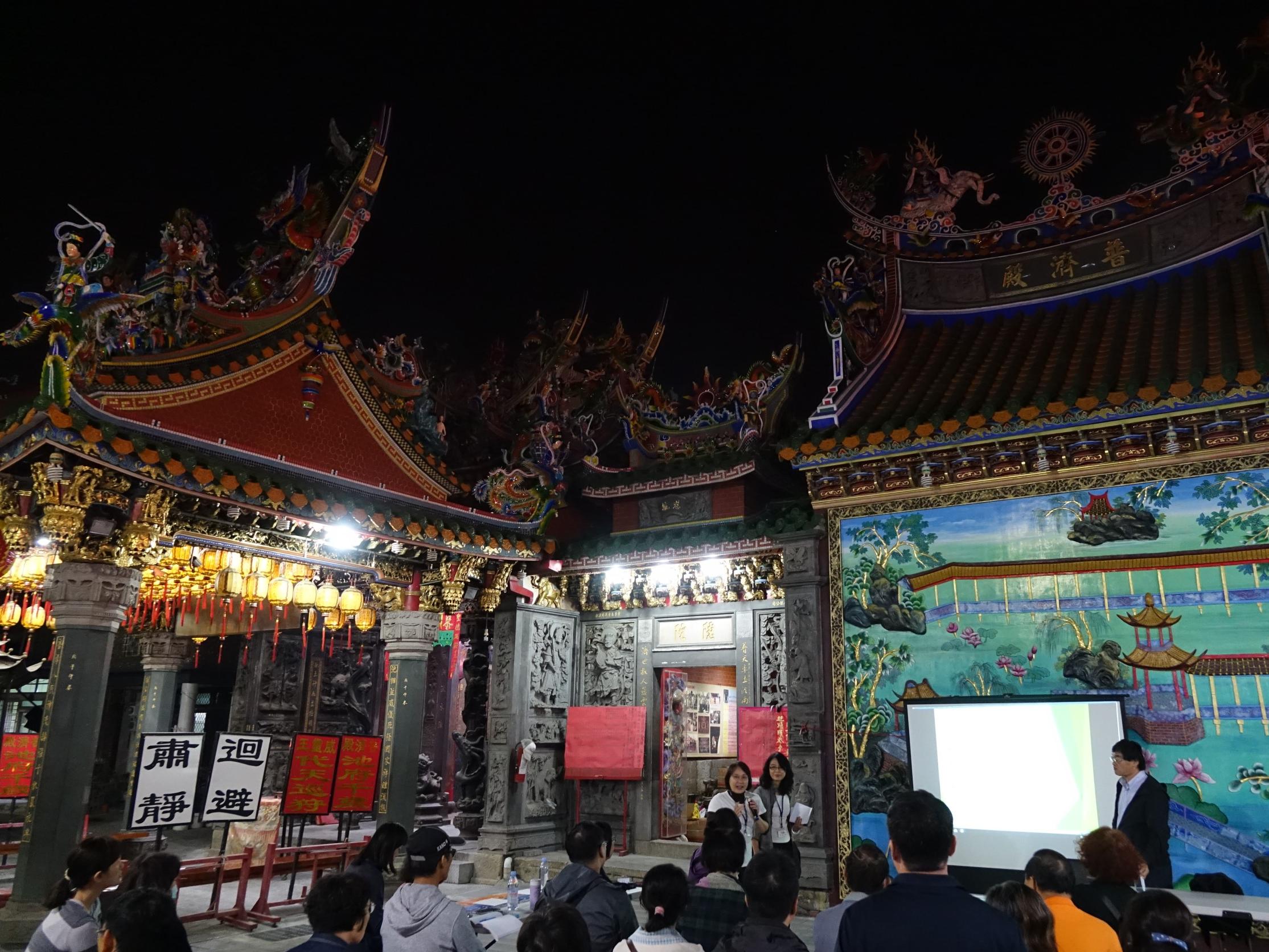 莊社長意猶未盡,他說,這是他第一次在廟口開講,對大廟興學的意義有了新體驗,同時承認,在開放的空間談公共議題,感覺比在封閉室內更有傳播力量。普濟殿第一次配合這樣的活動,廟方也對今晚的成果有所感動。當講座結束,我起身回頭,發現後面一整排站著的聽眾,這是今晚對我們文學沙龍的最佳回饋。