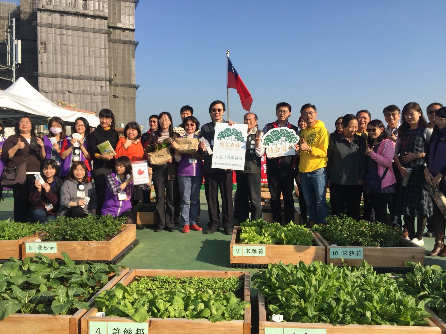 今天下午(21日),到大里戶政事務所參加「臺中市低碳城食森林成果分享會」;城食森林主要是在推廣屋頂種植蔬菜,達到直接從生活中參與節能減碳的目的,台中市已經有20處機關單位實際從事城食森林的活動,而今天同時與伊甸基金會合作,「捐5張發票,免費換1把蔬菜」及『示範點頒牌儀式』。
