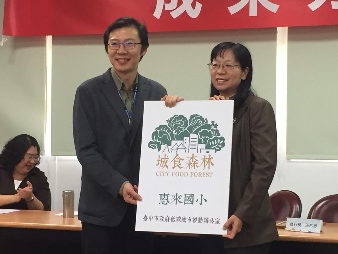 參加頒牌儀式的示範點有,大里區戶政事務所、惠來國小、僑仁國小、僑孝國小、德川家康社區、太平地政事務所、四張犁國小、台中市神岡區溪州社區發展協會、未來之翼公寓大廈及東海大學生態農場等,最近台中市炒得火熱的空汙議題,若能藉由民眾積極參與城食森林的活動,從自身節能減碳做起,為了自己呼吸的空氣多盡一份力,我相信很快台中市的天空就會再次回到通透明亮的藍天,我們也能再次大口呼吸。