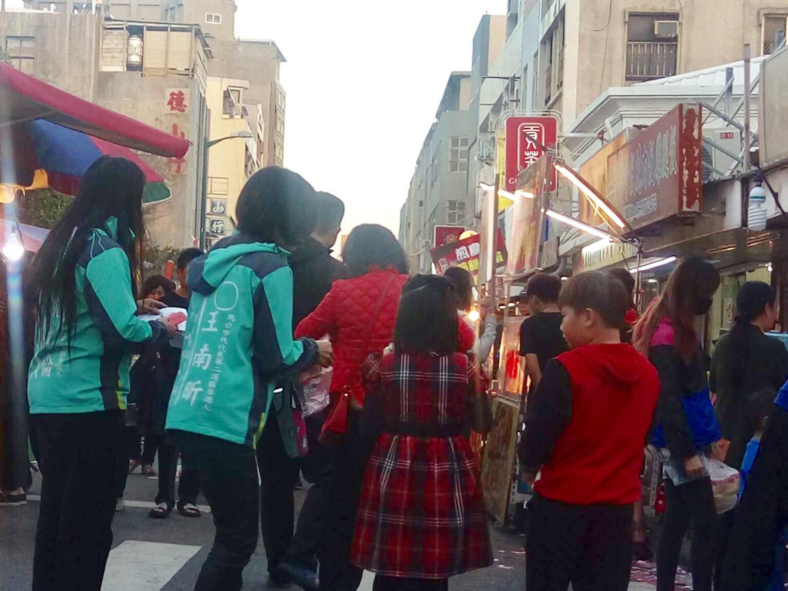 五天年假期間城隍廟大街返鄉人潮湧現,許多難得休假的鄉親都帶著長輩與孩子到廟前大街遊玩,推派多位參選人的澎湖青年陣線,在縣議員參選人冼義哲帶隊下連續五天在城隍廟大街不間斷拜票、發送春聯貼紙。