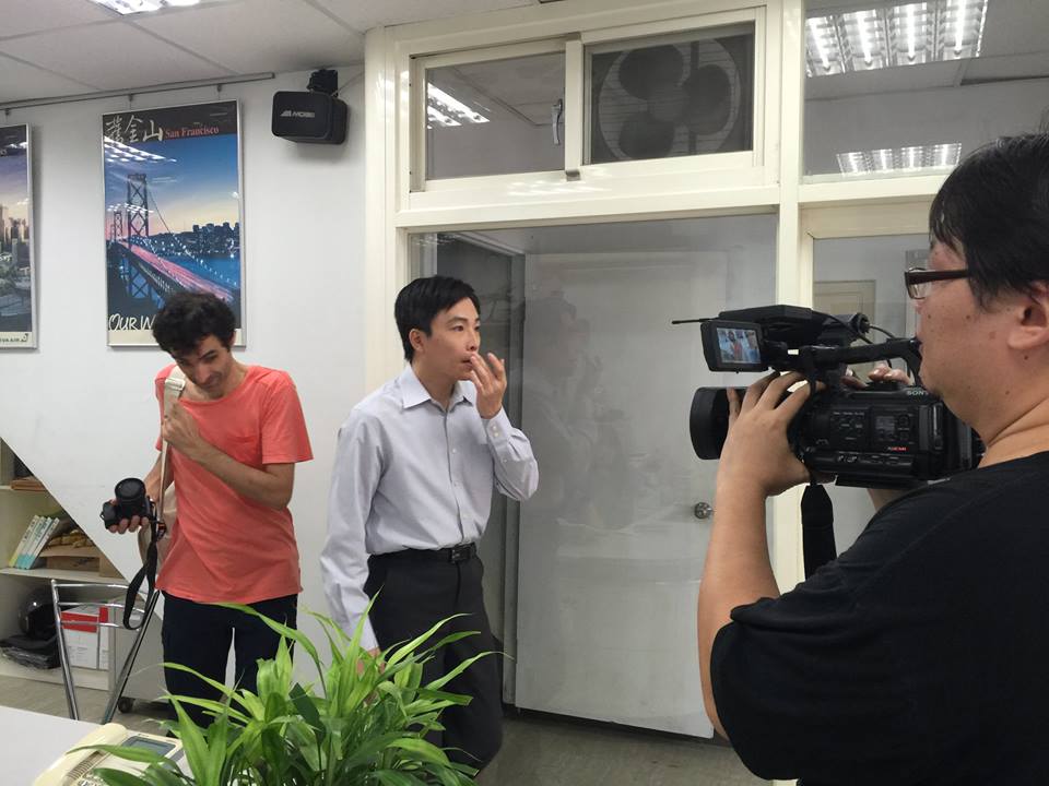 導演尚若白對於這個以白色調為主的旅行社顯然相當有好感,「他說他喜歡這裡明亮親切的感覺,我們回去上網查了一下,才發覺他真的是個導演,拍了很多台灣的紀錄片。」