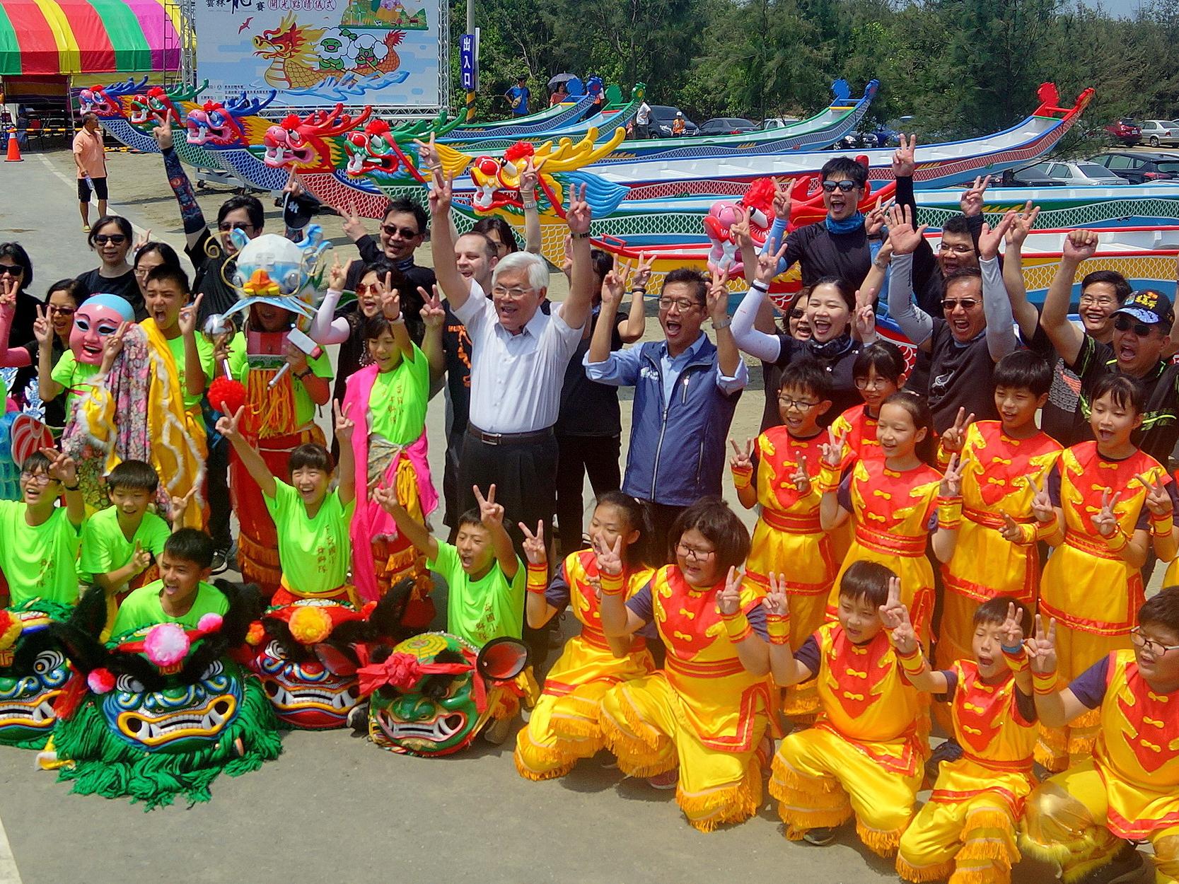 李進勇表示.首屆龍舟競賽特別訂製8艘台灣自製的競技龍舟.材質有別於傳統伐木造船.是以玻璃纖維所打造的船身.整艘龍舟重量較輕.速度也較快.對於初次參與競賽的選手.大大提升操控性與參與感。