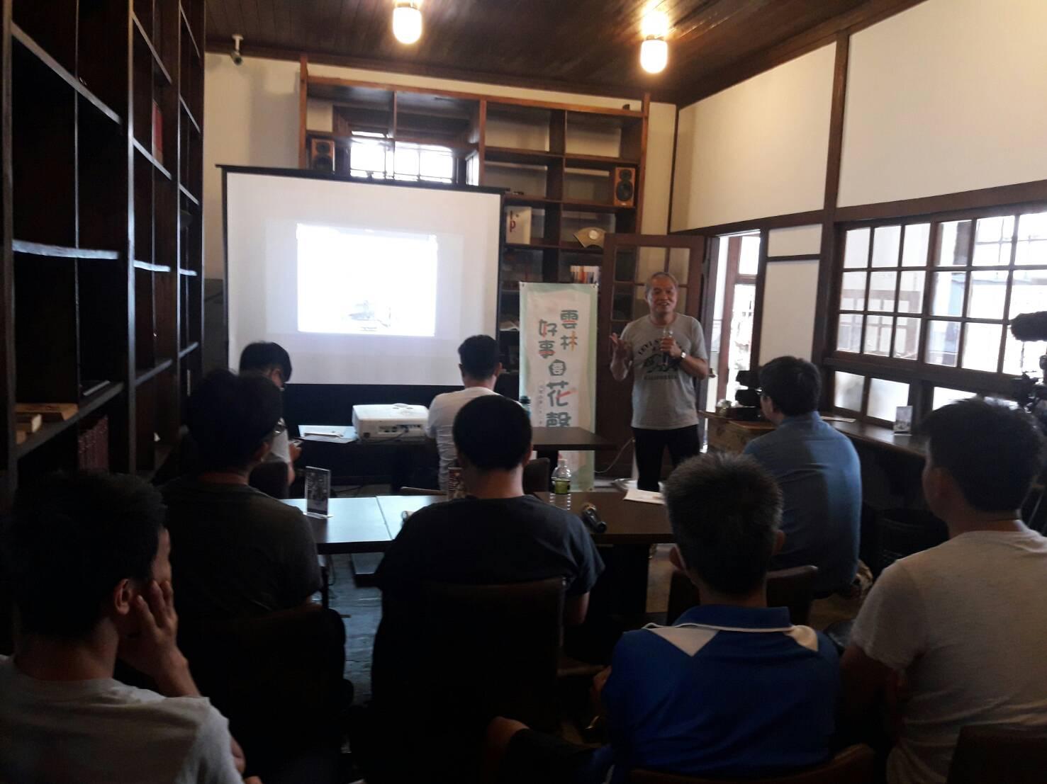 由雲林縣政府主辦,串樓口社群平台承辦的「雲林好事要花聲──媒體識讀與公民記者訓練營」在昨天(6/16)於虎尾雲林記憶Cool邀請《走拍台灣》作者,資深攝影師謝三泰分享攝影技巧以及從事攝影創作的心路歷程。