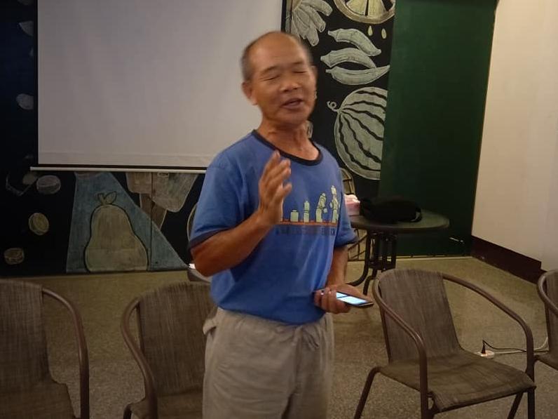 接下來由學員輪流自我介紹,大家都很熱情的分享自己正在做的事和關注的議題,其中最令學員驚嘆的是從事景觀工作的李溪圳為大家獻唱西螺大橋舞台劇的開頭曲和西螺古調,以及布袋戲俚語,還有很幽默地分享自己命名的故事,獲得大家的喝采。