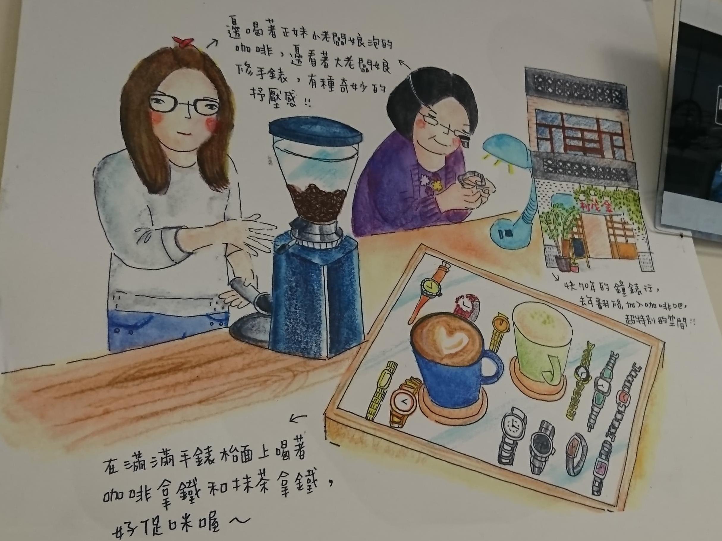 等待修錶的過程,品一杯手調咖啡,看著鐘錶師傅細心專注的神情,很享受,也很療癒。