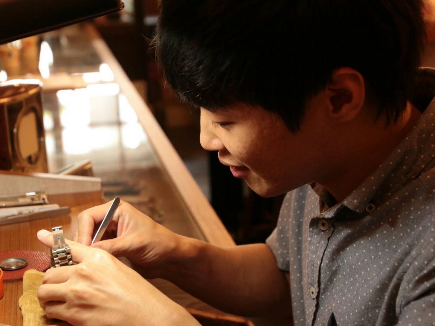 說起鐘錶,眼中閃燦著自信的光芒,坦言從小看著爸爸修過無數的錶,從不認為這是有意義的工作。在一肩扛起家業的那一刻,這才明白,修錶背後存在著客人對於守時的承諾,以及鐘錶對於顧客來說的情感聯繫,一邊修著錶,一邊聽著客人分享生活的點滴,也透過互動中瞭解客人的生活方式與態度,看到客人接過手中已修復的錶那股成就感與喜悅,才是這份工作最大的價值與意義。