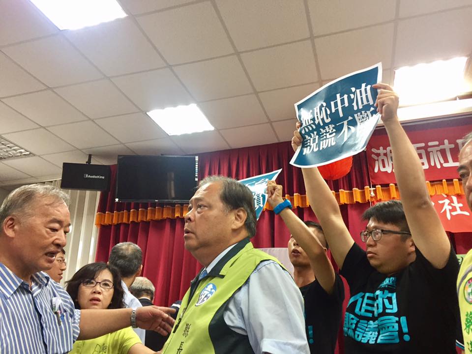 自7月17日爆發「中油漏油隱匿事件」至今已逾一週,中油與政府高層處理的過程引來地方極大不滿,18日中油首度召開地方說明會時,中油代表竟嘻皮笑臉地面對群眾大犯眾怒,後隨有關單位介入調查,發現中油說法多與事實不符,25日下午原訂於湖西社區活動中心再開說明會,卻又上演「大遲到」的戲碼,致澎湖縣長陳光復與中油董事長戴謙抵達現場時現場一度險爆發肢體衝突。