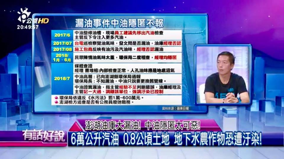 會後受邀三立、公視各大節目的澎湖青年陣線代表張翔淳感嘆,中油親身示範了什麼叫做「說一個謊,再用無數個謊來圓」,說明會開場的時候,說什麼「老天爺很眷顧澎湖,所以沒有釀成災禍」,明明老天爺眷顧的是中油,真發生什麼公安意外,不是賠償就可以了事的。