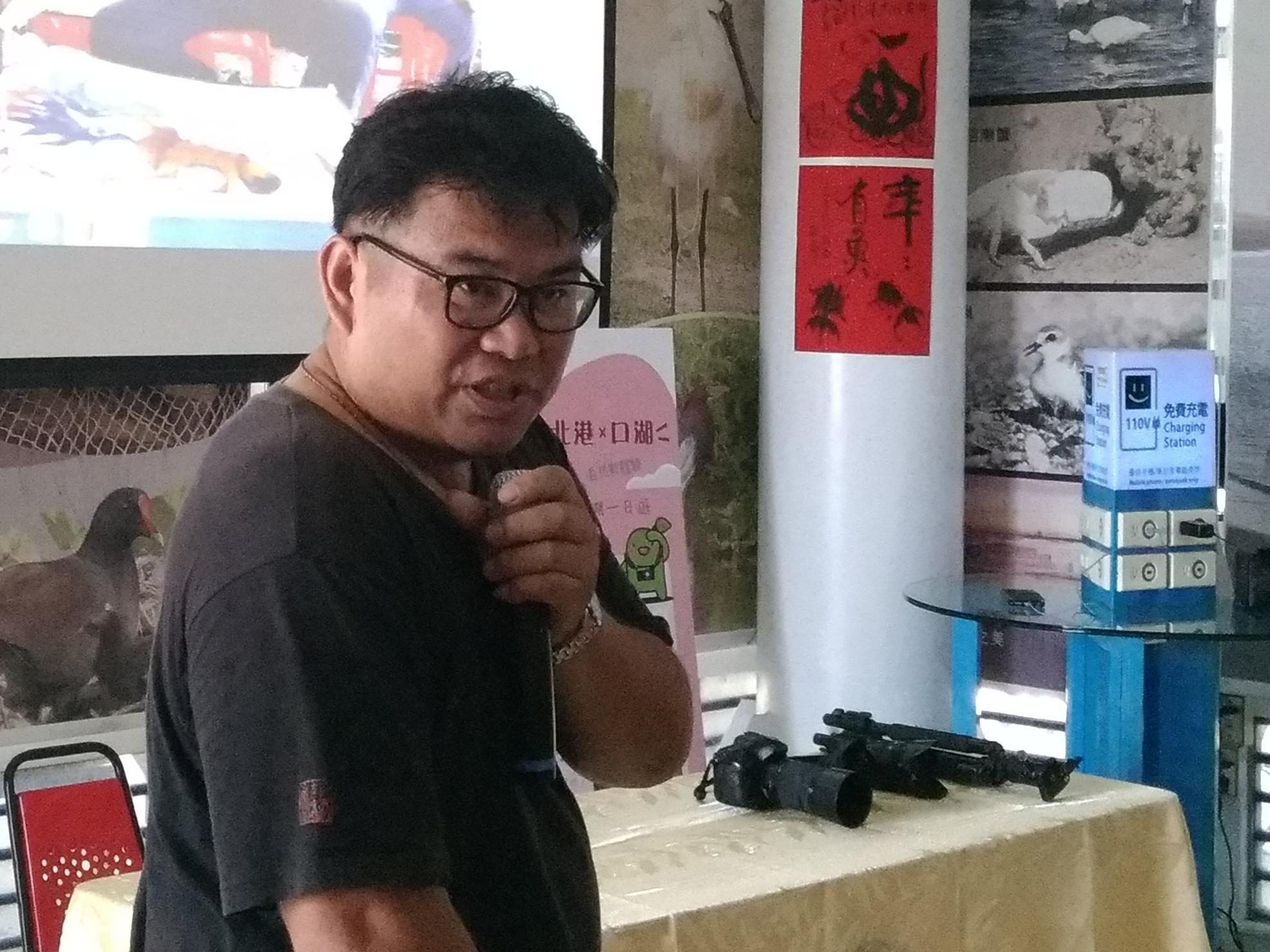 黃昱震也分享他在口湖的攝影作品,口湖的椬梧滯洪池、成龍溼地和湖口溼地的生態景觀,以及被列為國家重要無形文化資產的「口湖牽水藏」民俗祭典,還有口湖人日常的生活和活動都透過他的相機記錄那一瞬間的美。