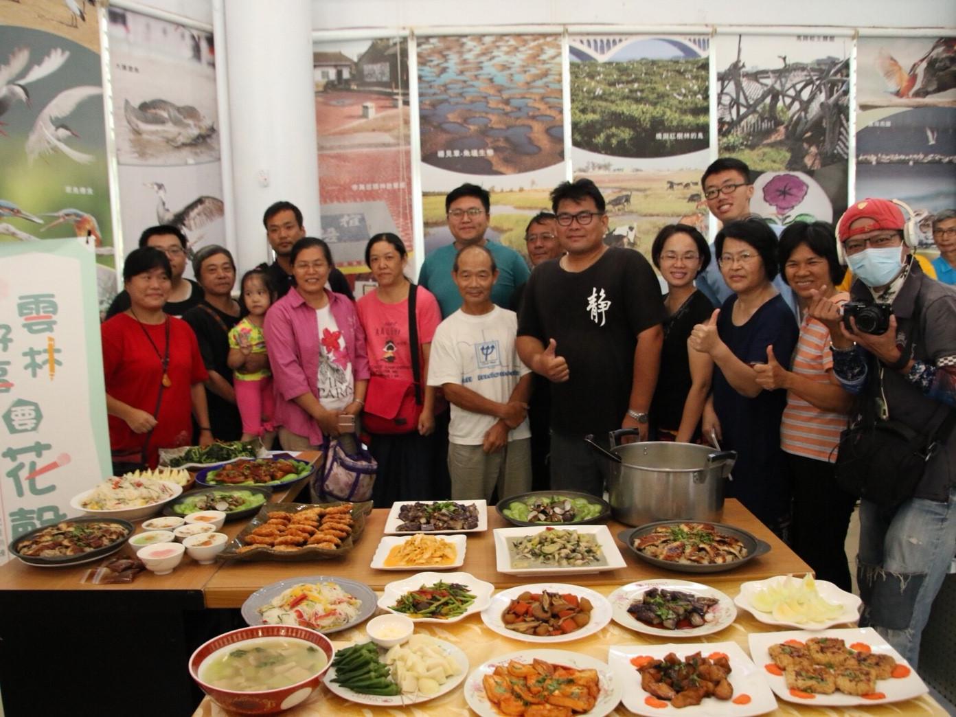 當天口湖遊客中心也精心準備「口湖風味餐」,餐桌上的鰻魚、蛤蠣、蝦餅和牡蠣都是口湖養殖漁業的特產,搭配雲林的蔬菜變成一盤盤好吃的料理,讓在場的學員都大飽口福。