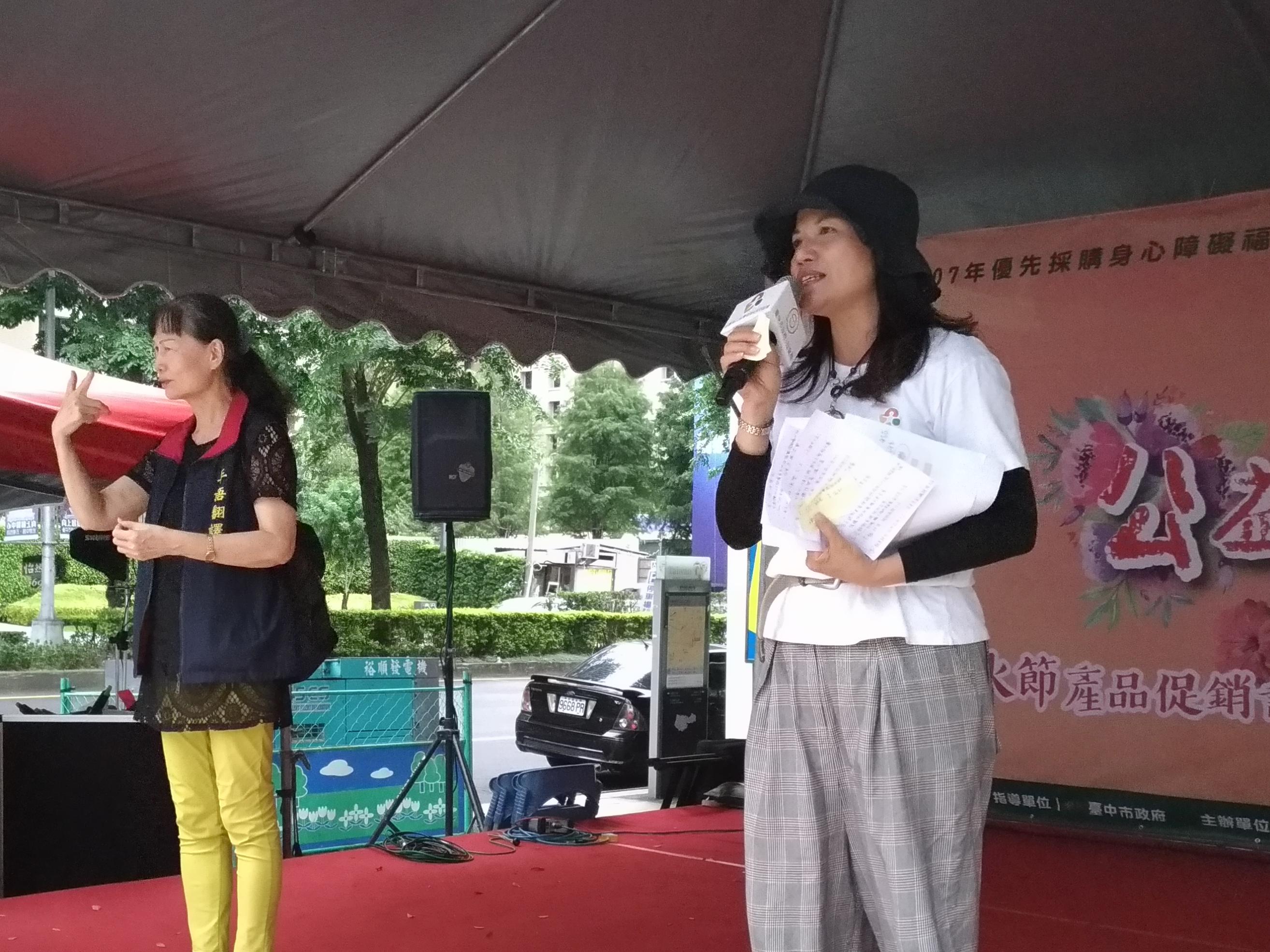 社團法人台灣公益CEO協會秘書長林淑娥(右)致詞製作產品的過程中感受到被社會需求