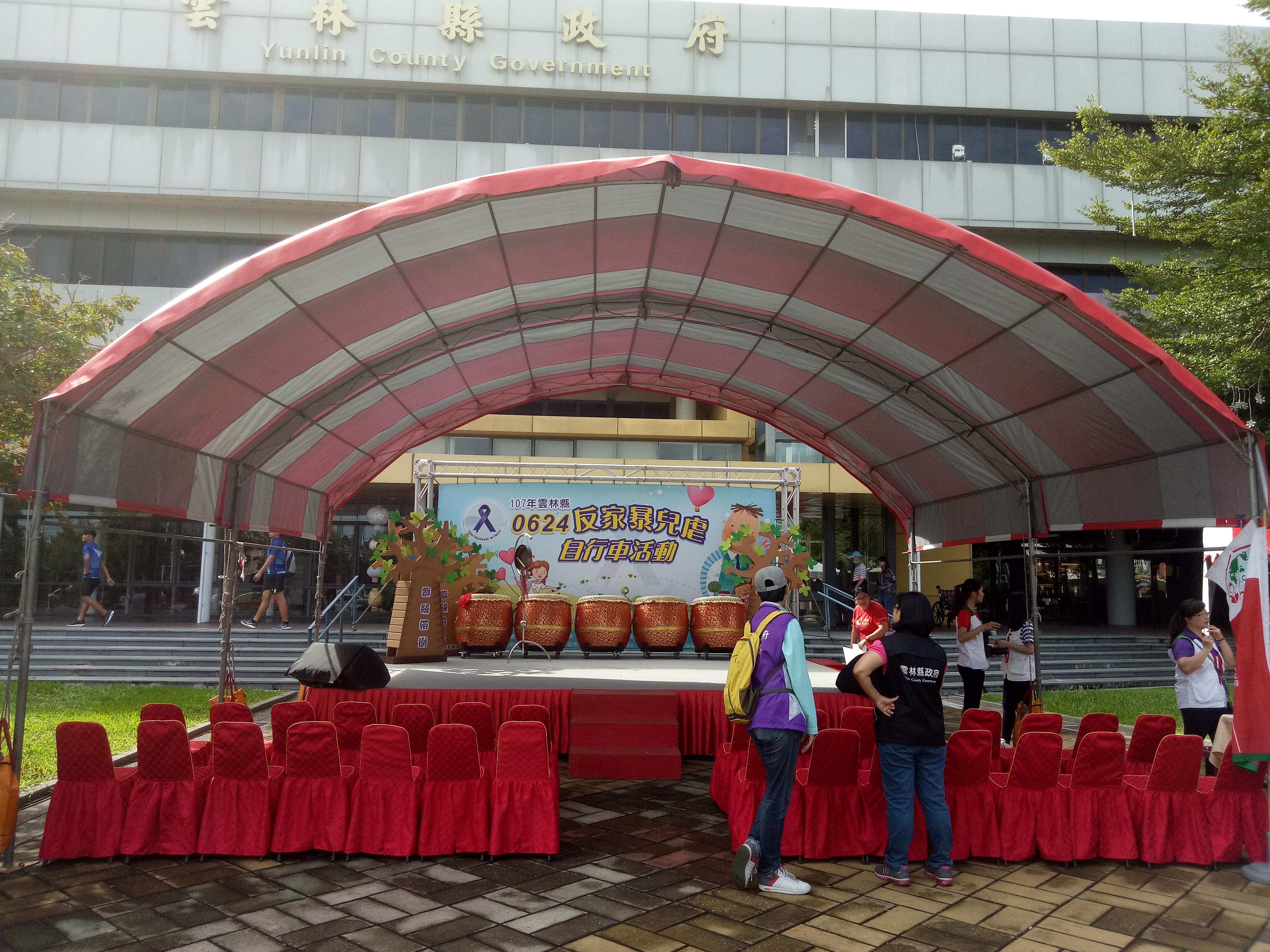在雲林家扶希望太鼓隊撼動人心鼓聲揭開序幕,縣長李進勇與雲林家扶陳燦勳主委等,帶領來賓及車友們一起將象徵反家暴兒虐的『紫絲帶』掛在樹上,共同簽署反家暴宣言,為家暴兒虐防治工作盡自己一分心力。