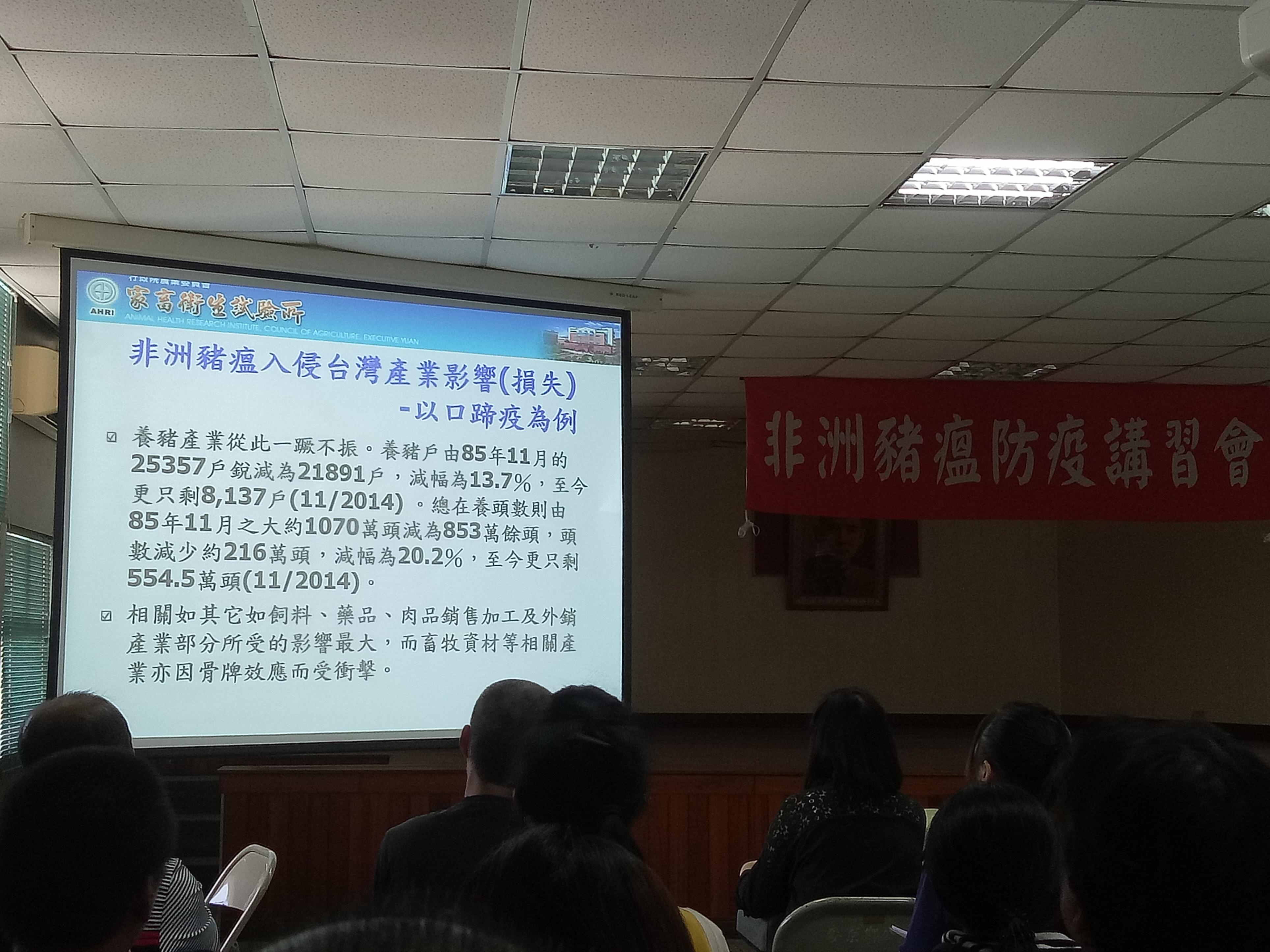有鑒於此,為加強本縣養豬業者對非洲豬瘟疾病的認識及防疫觀念,特別指示於麥寮鄉公所辦理非洲豬瘟防疫講習,邀請農委會動植物防疫檢疫局動植物防疫所技正 鄭安國及家畜衛生試驗所之長官、專家,到此講授本病。