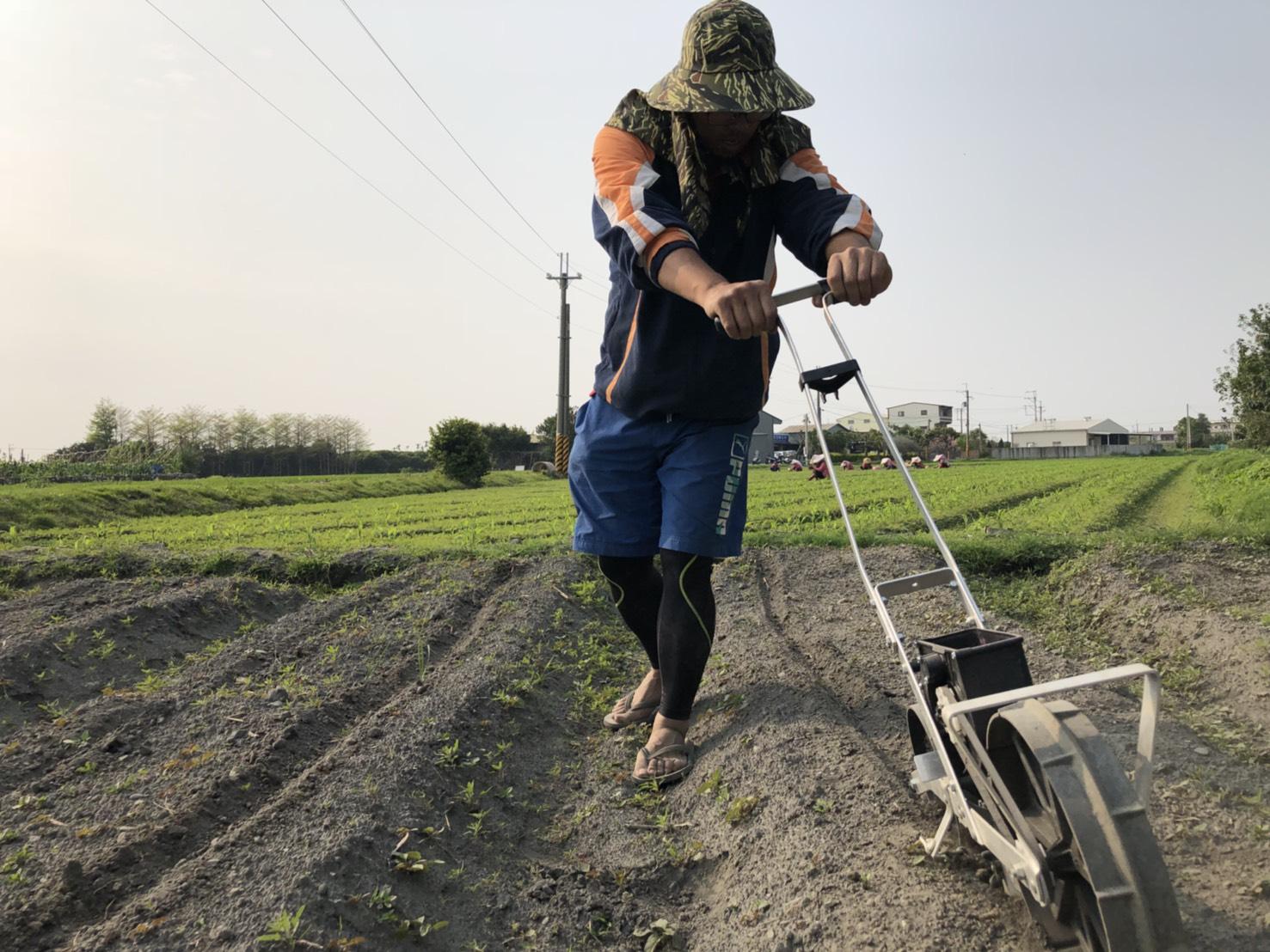 「黃豆耕作見學」活動參與民眾種植用播種機撥種黃豆