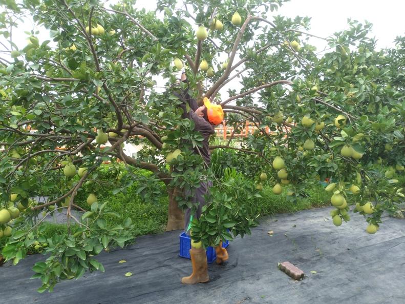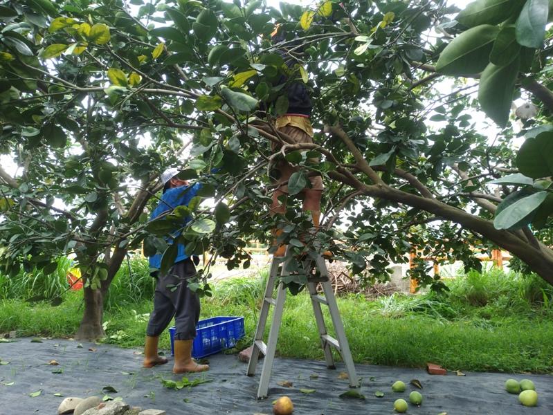 辛苦的採收文旦,為了在高處的文旦,得不斷的爬上爬下熬過風雨,才有期盼的收成