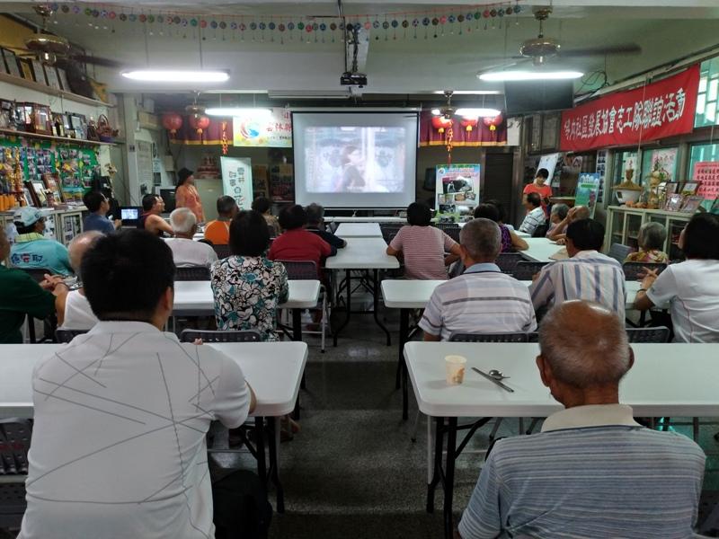 「青春作業簿」影片放映中,大家專心的欣賞溫馨埒內社區