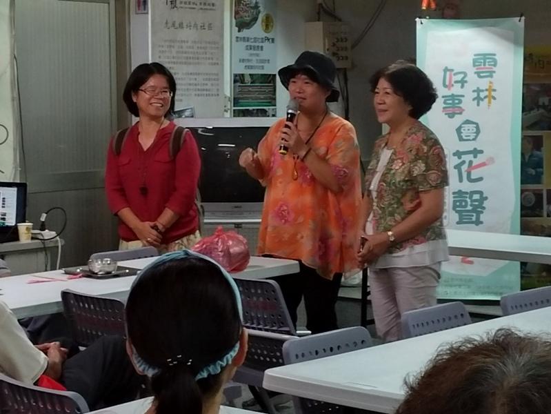左方自由時報資深記者廖淑玲,中間串樓口董事長黃淑玲,右邊埒內社區理事長許秀琴老人家也是可以有夢想的