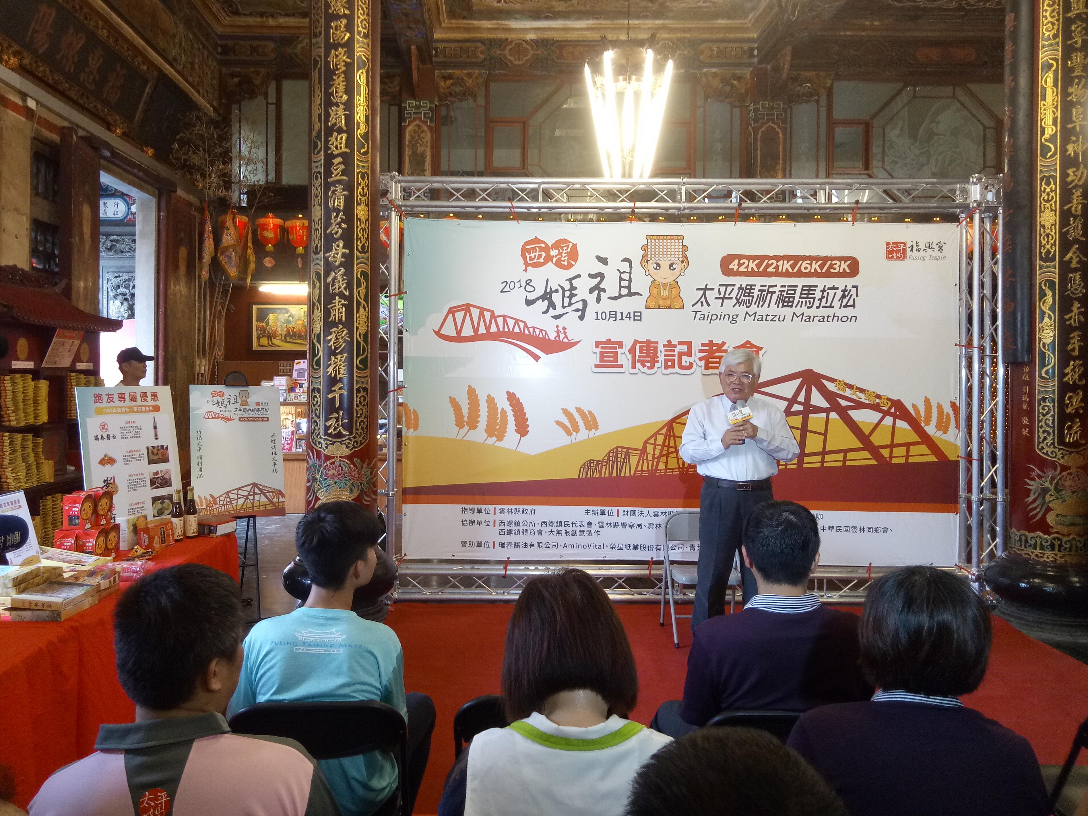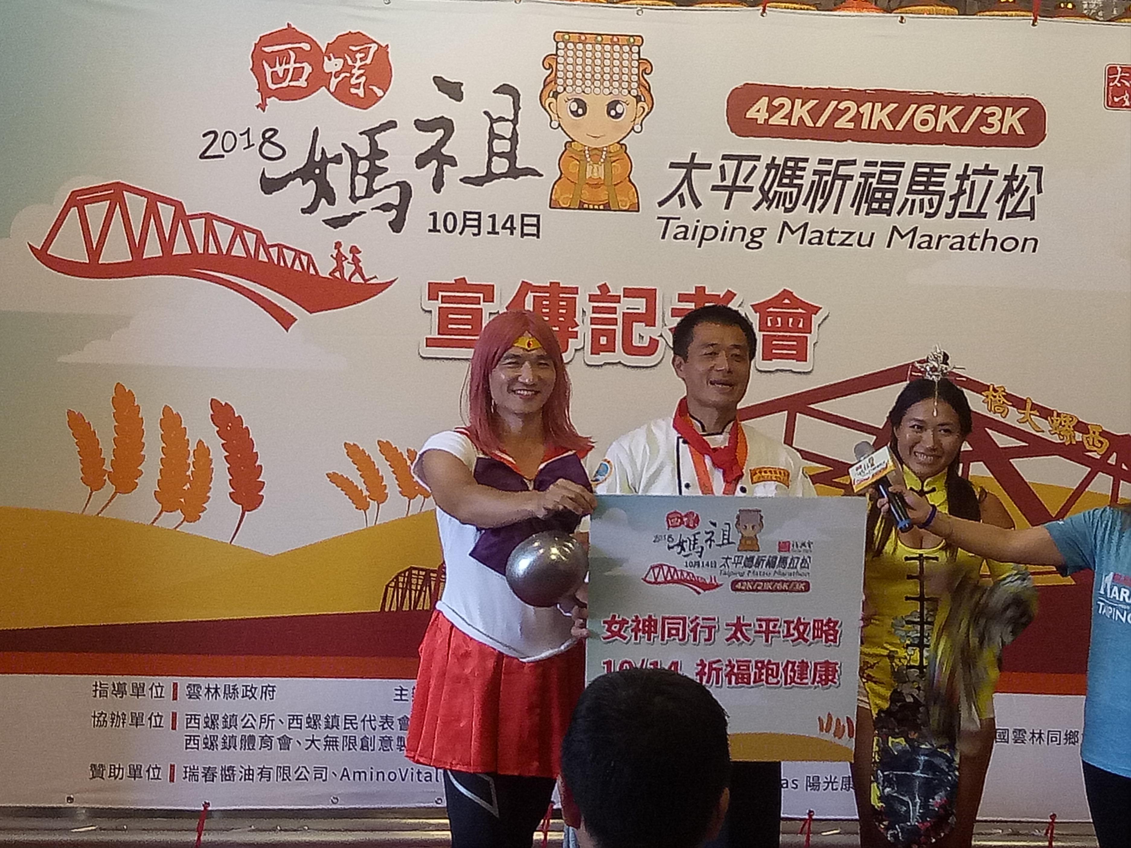 楊文鍾更強調,本場活動與一般馬拉松最大的區別在於,為了讓參加者感受到西螺媽祖太平媽的文化底蘊,特地安排Q版太平媽坐鎮馬拉松前導車引領所有選手與女神同行祈福跑出健康,更在賽道上及終點前設置由神童三太子及眾多廟會陣頭夾道歡迎為選手加油,堪稱是最有神威的星光大道,全程都能感受到熱鬧的廟會嘉年華歡慶氣氛。
