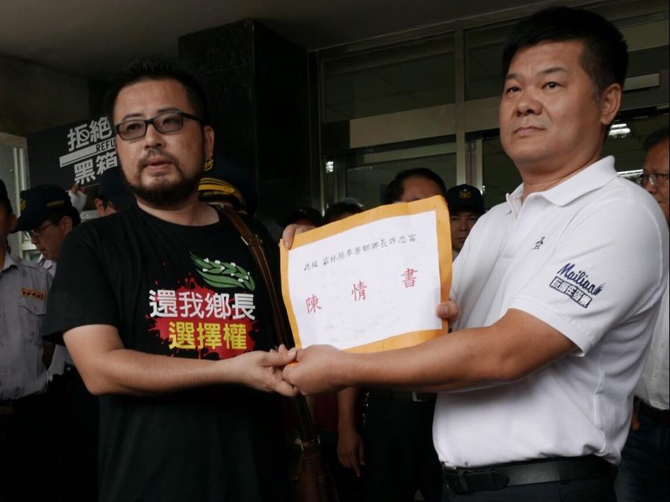 麥寮鄉鄉長廢票聯盟發起人許軒豪,今9/4中午前,前往麥寮鄉公所為2018年9月7日(五)上午十點「支持鄉長廢票聯盟,遞交陳情書活動」提出路權申請,活動將於「麥寮城鄉公園」集合鄉民齊心走向公所,向許忠富鄉長表達訴求,請現任許鄉長還給麥寮鄉三萬多位鄉民選擇鄉長的基本權利。