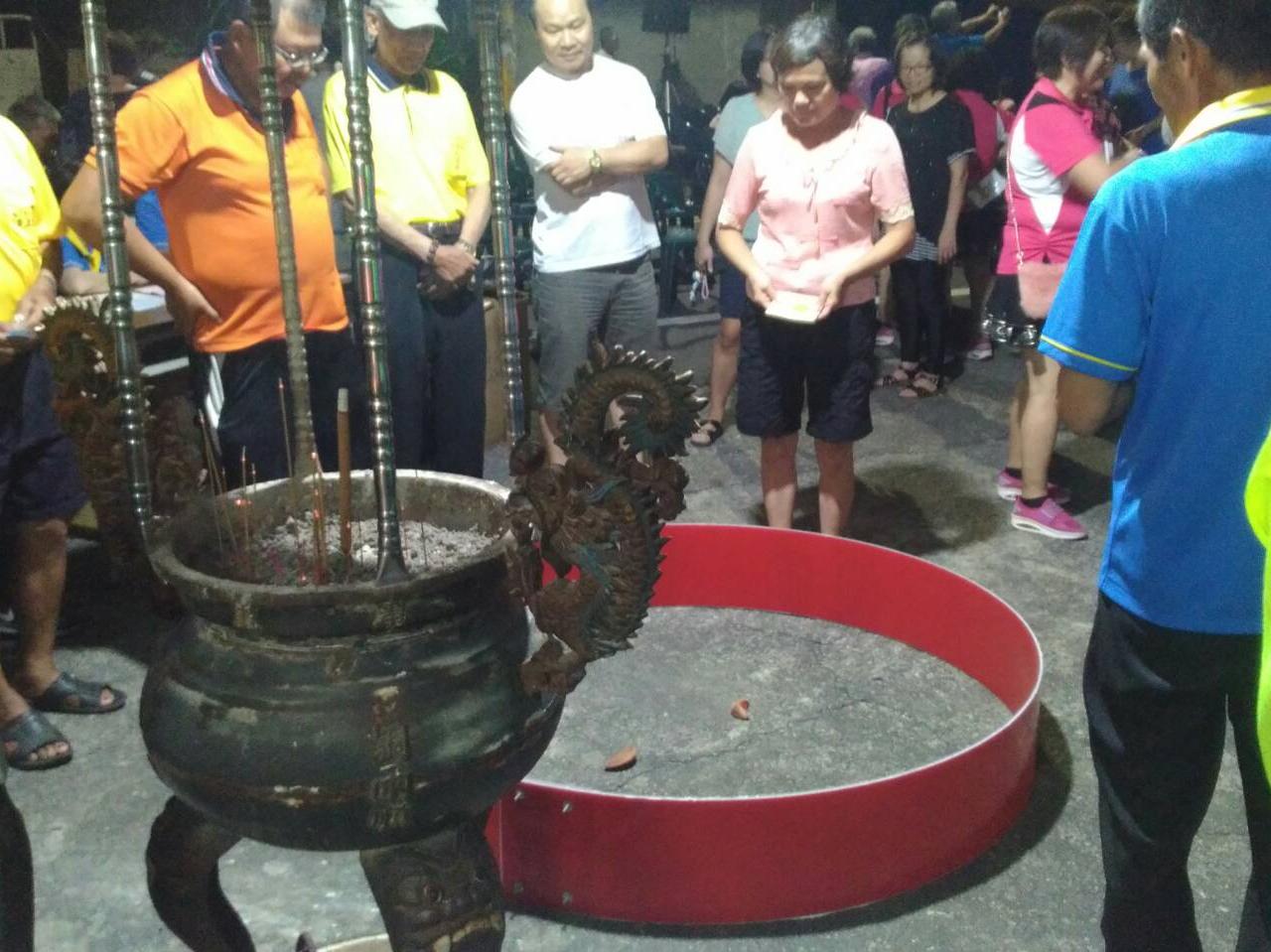 除了舞台上熱鬧表演,福德宮前擲筊的活動也同步進行,參與擲筊的信徒捐獻三百元的費用,取得擲筊的資格,由最多筊的依序取得獎品的大小。有機車、液晶電視、腳踏車及其他的獎品,即使沒有聖杯也有一張刮刮樂彩劵,參與活動的居民每人有份小小的紀念品。