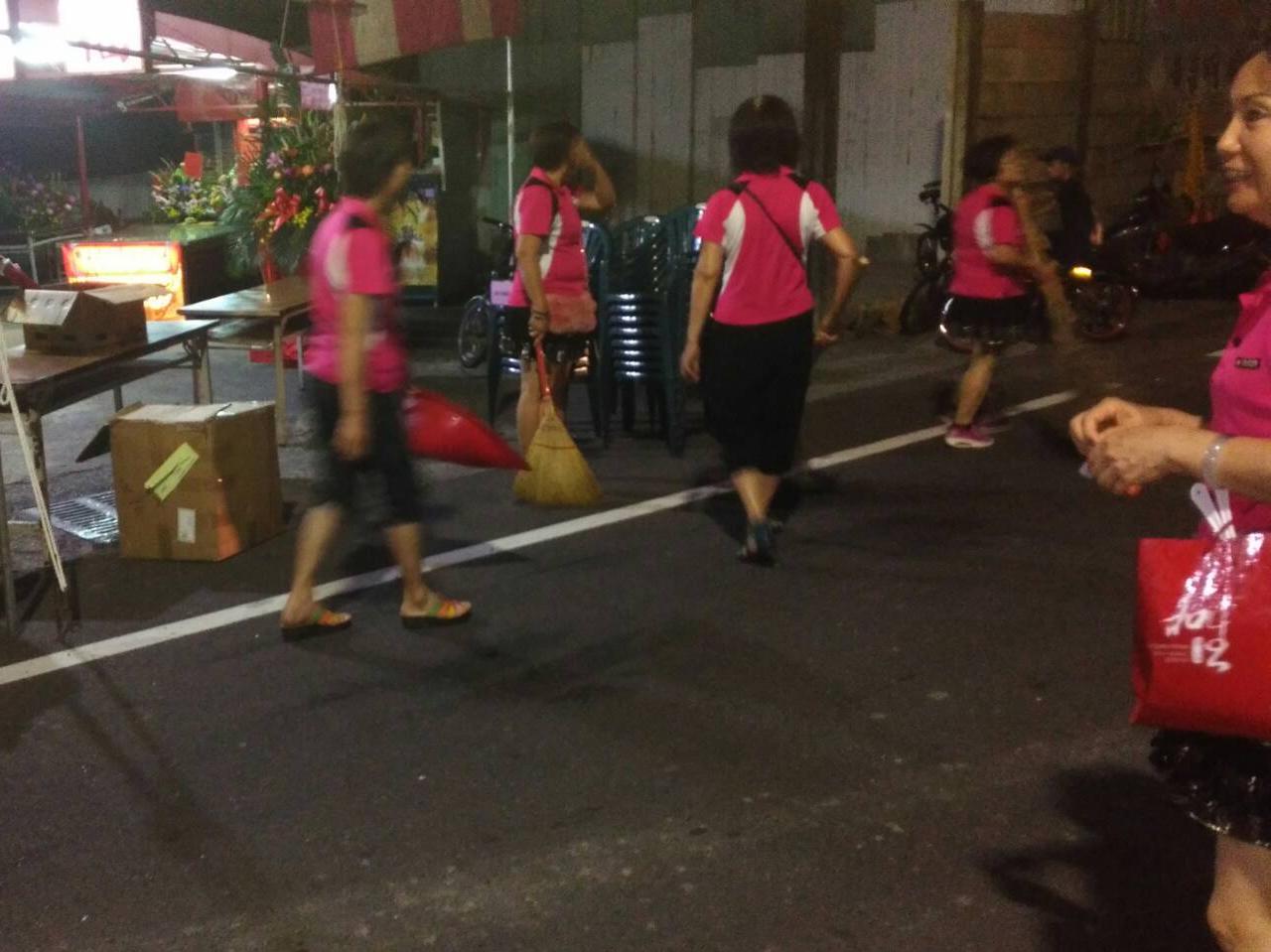 晚會結束後志工們也拿起掃把,打掃環境恢復場地,愛護地球,為更好的家園大家齊心努力,為晚會畫上完美句點。