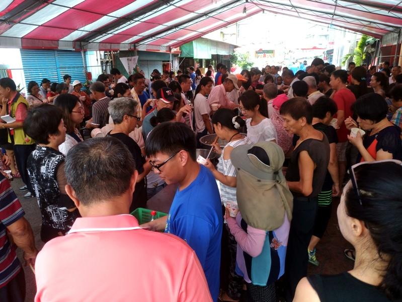 信眾站在路上吃平安福食大眾享用平安福食