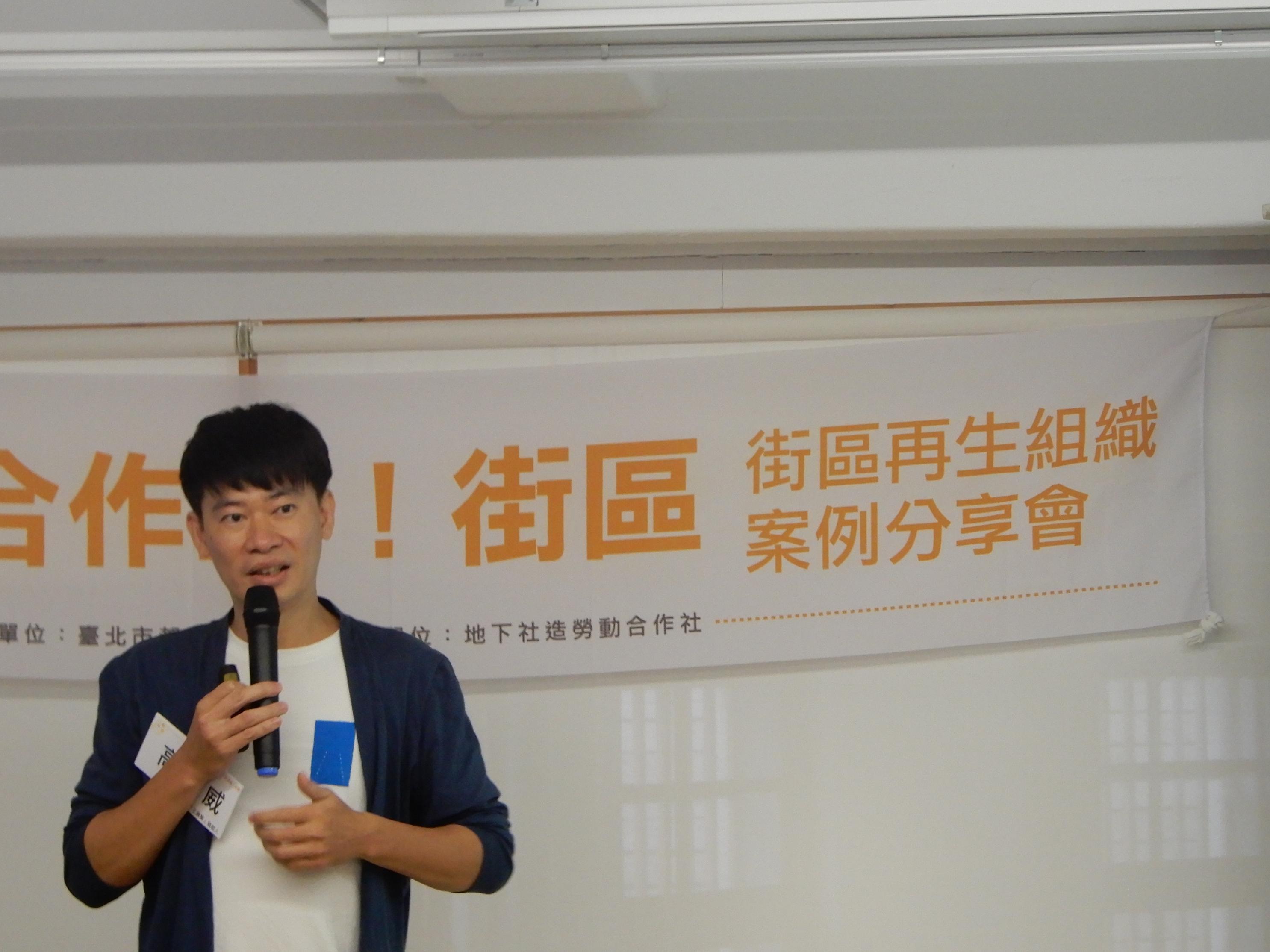 「街區再生的組織策略:舊城復興x商業促進x街貓幫派」分享會邀請臺南市正興幫幫主高耀威分享正興街街區活化經驗。(Raven攝影)