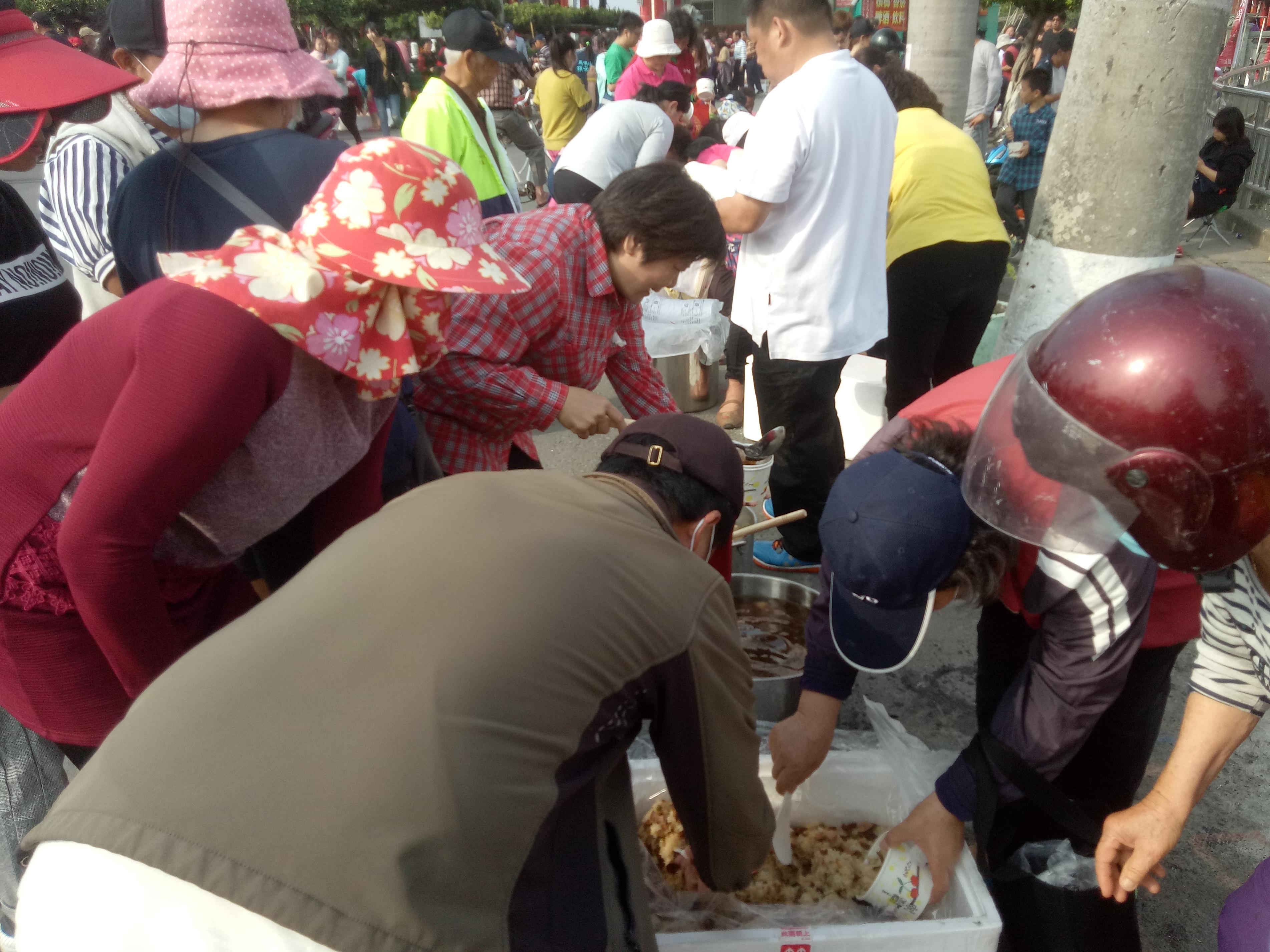 今年主辦村落馬鳴山村,繞境儀式後的吃飯擔活動,更是葷食區透過油飯、羊肉湯、炒米粉、肉羹、鹹菜鴨、素食區等多樣陣頭菜的分享,讓全國民眾感受在地鄉親的好客等在地小吃美食,讓民眾盡情享用澎湃的平安宴。