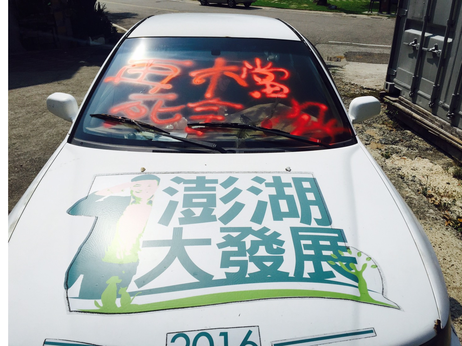 日前澎湖博弈公投反賭大將冼義哲座車擋風玻璃,遭人噴漆恐嚇,外界質疑為支持公投者所為;澎湖國際化推動聯盟今由召集人陳猛領軍,率同聯盟3劍客退休校長柯仲甫、旅外文創工作者鄭惠齡、鳳梨王子陳威麟出面反擊,要求反方回歸公投正常體制,將公投案定位為公民自決運動。