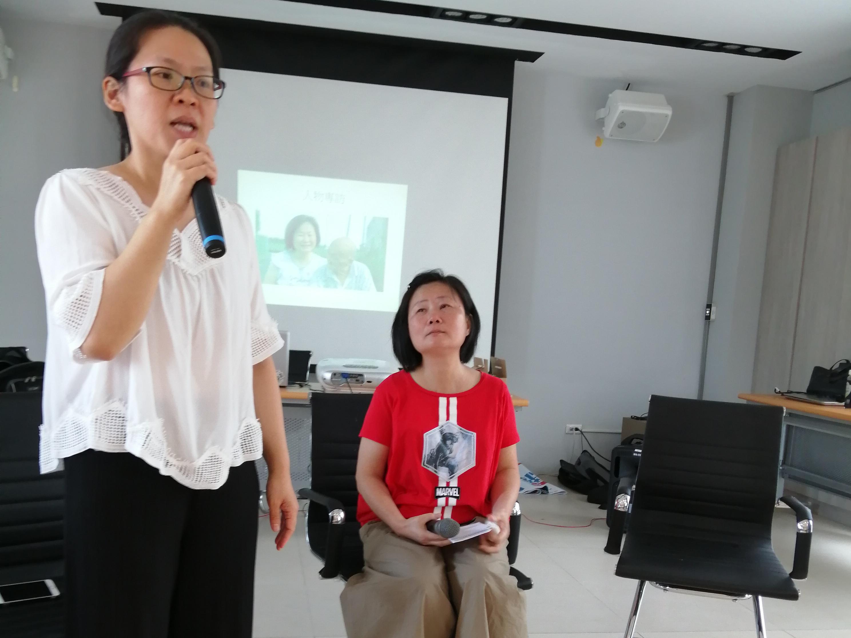 老師要大夥放下筆記本,大夥圍成圈,用三分鐘自我介紹,相互訪談、演練,如何引導,其中有位學員談到失智父親,想要記錄與家人最後的時光。我深深的感動,因為家父晚年也是失智患者。他們對孩子付出,不求回報,也不想增加孩子的困擾,自尊驅使不想承認自己記不住,這時手足之間的分攤要有共識,如何讓長輩在熟悉的環境,並刺激大腦,延緩老化,再再考驗照顧者的耐心與諒解。 -