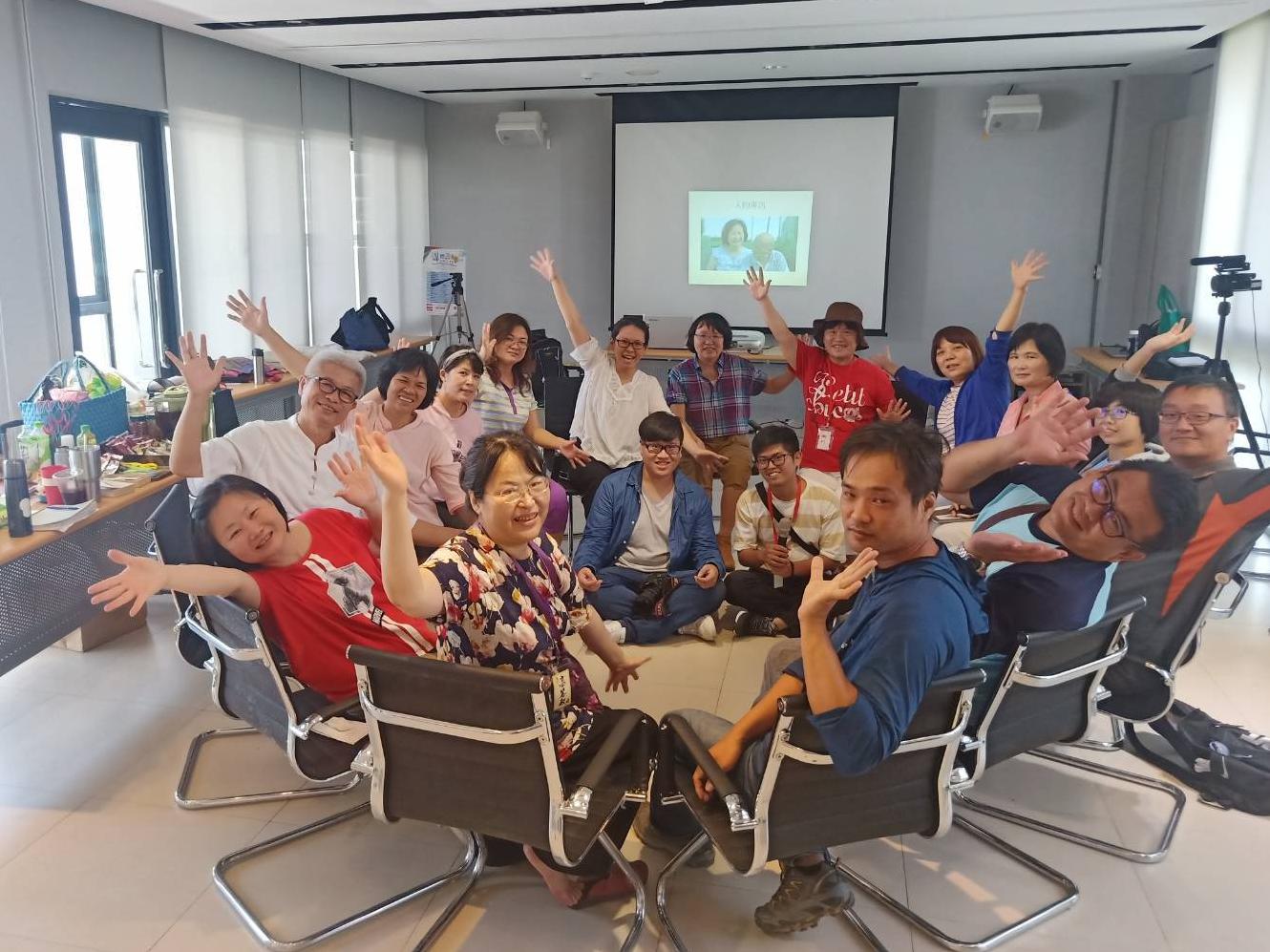 王慧君導演的影音實戰拍攝技巧/手機微電影,分組拍攝做成微電影。我這組選定延續失智的議題,組員們探討當今失智長者,外勞看護,家人相處模式用話劇型態演出,利用現學現賣剪出微電影。在很嗨的氣氛中時光飛逝,相信播下的種子在不斷灌溉下,終會成長。