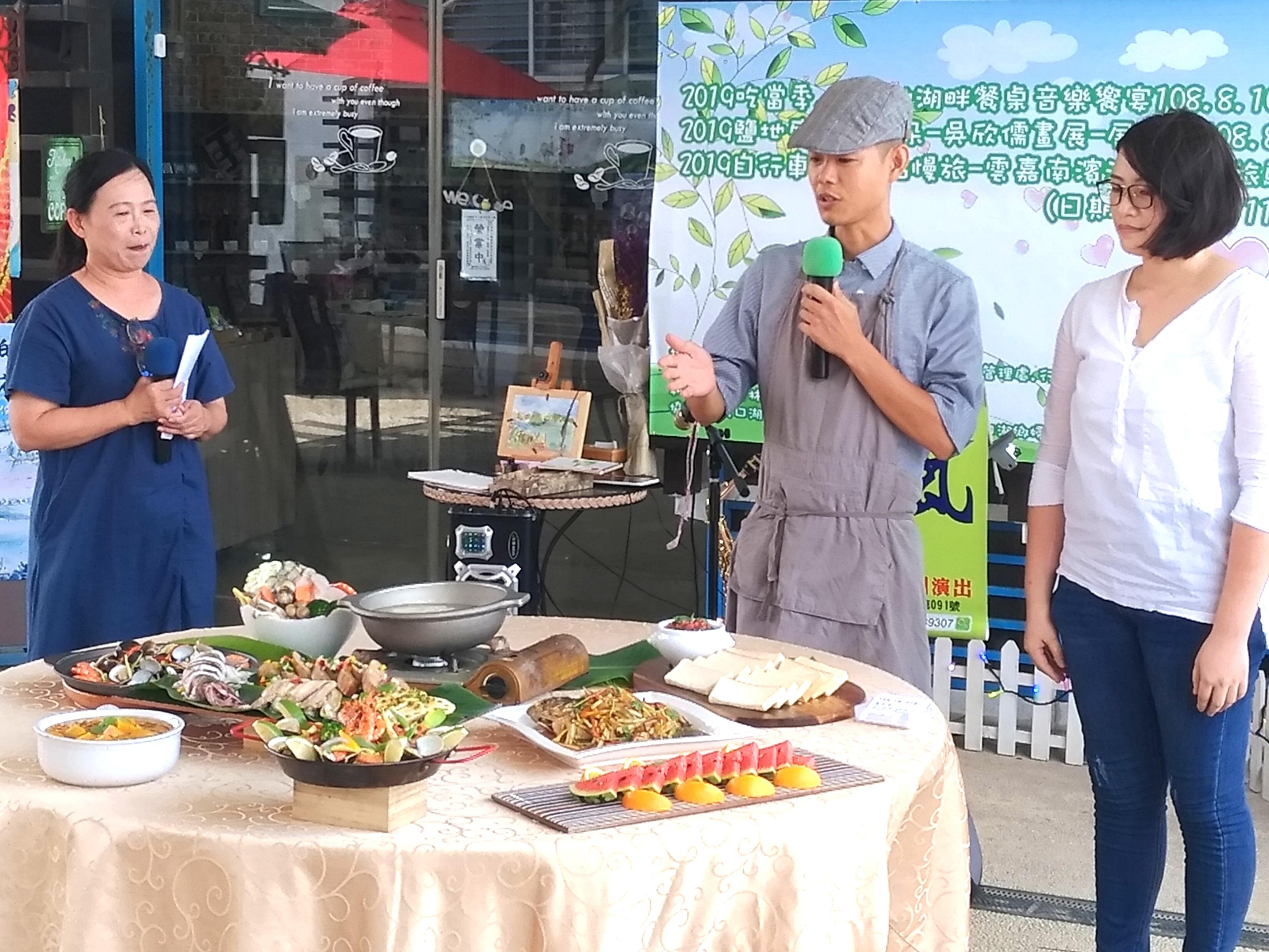 108年8月10日下午4點30至7點,將於口湖遊客中心辦理「吃當季.食當地」湖畔餐桌音樂饗宴,將由口湖子弟蔡珮華及廖韋恩所創辦的36W食研室,帶領本地家政媽媽親手燴製風味料理,結合音樂、美食、景觀,提供民眾悠閒賞夕陽品味在地美食的休閒活動。